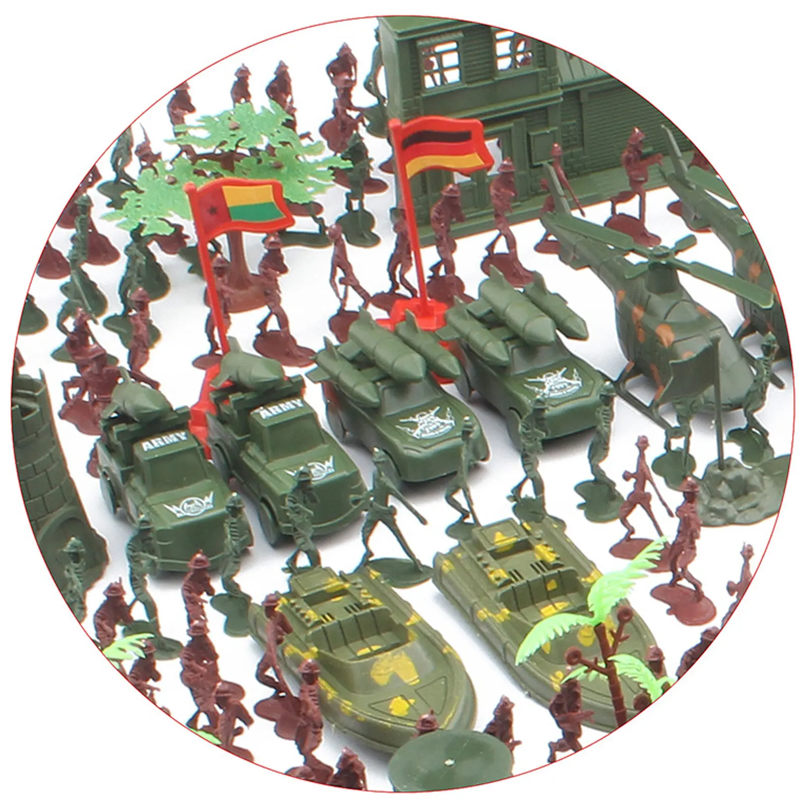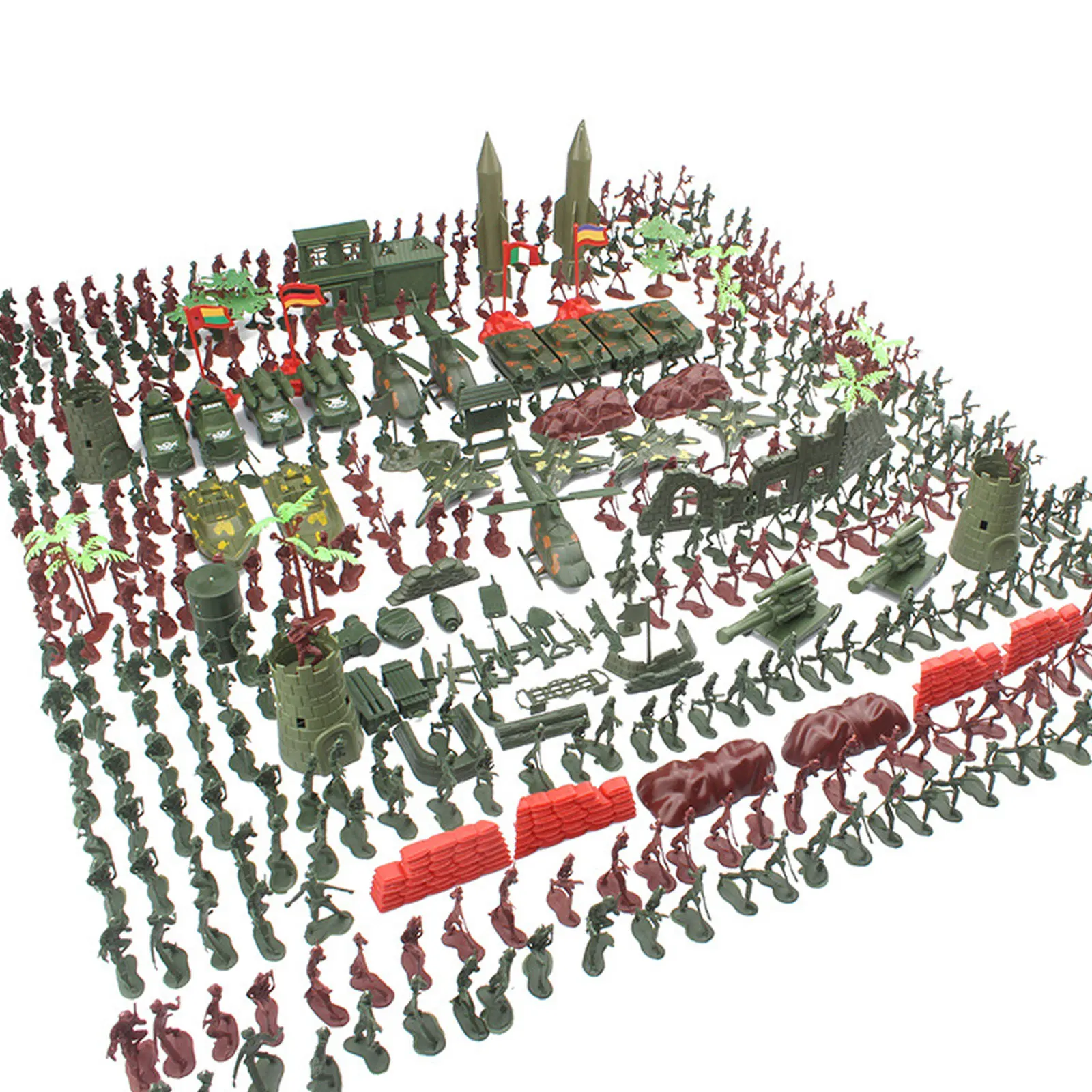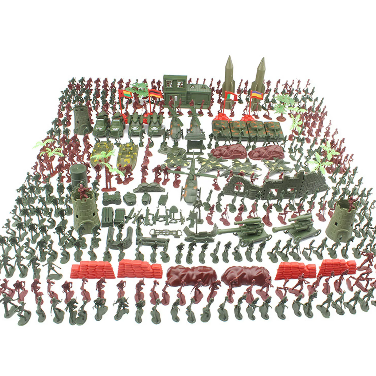 519 шт., военные фигурки, аксессуары, игровой набор, набор игрушек для детей, для мальчиков и девочек, подарок на день рождения, Рождество, Новый годПодробности:Что вы получите:Есть 519 военных игрушек, содержит 450 солдат и 69 аксессуаров, таких как мешки с песком, маленькие деревья, ракеты, пушки, заборы, бункеры и т. Д. Легко создавать военные сцены!Бесконечное удовольствие:Дети могут разделить их на две части в соответствии с цветом, чтобы имитировать сцену сражения, осуществлять свои социальные навыки и давать им много времени удовольствия.Высококачественный материал:Изготовлены из нетоксичных, нетоксичных и не содержащих свинец прочных пластиковых материалов, нет острых краев или углов, которые могут повредить вашему ребенку, безопасно играть.Раннее Образование:Полный набор с реалистичными деталями, способствует развитию познания вашего ребенка, координации рук и глаз, моторике! Также стимулирует их воображение.Идеальный подарок:Идеальный подарок на праздник, игрушки, школьный класс приз, Детские обучающие игрушки, вечеринки по случаю Дня рождения, Рождества, Новый год, pretent играть вечерние, или другие spcial события.Спецификация:Материал: пластикСолдат Размер: около 4 см/1,57 дюймаПримечание:1. Из-за ручного измерения возможны небольшие отклонения.2. Содержит мелкие детали, не рекомендуется детям до 3 лет.Посылка:1 Набор военных игрушек (519 шт.)