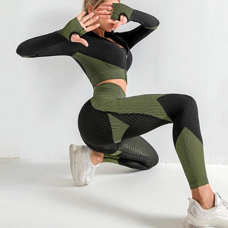 Женский комплект для йоги, для фитнеса, бесшовный, с длинным рукаво...