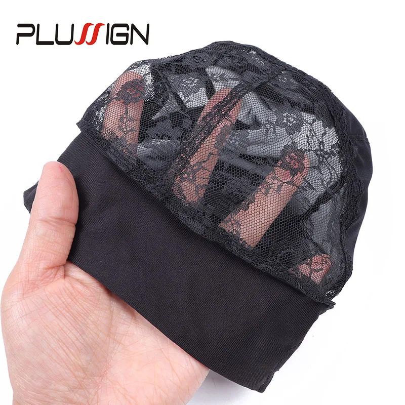 Женская шапочка с регулируемой липучкой, Новое поступление, шапочка для волос с волнистым плетением, шапочка для парика, для изготовления париков, Черная кружевная купольная шапочка s