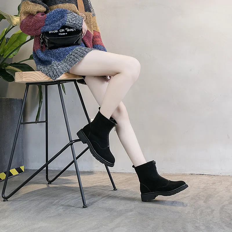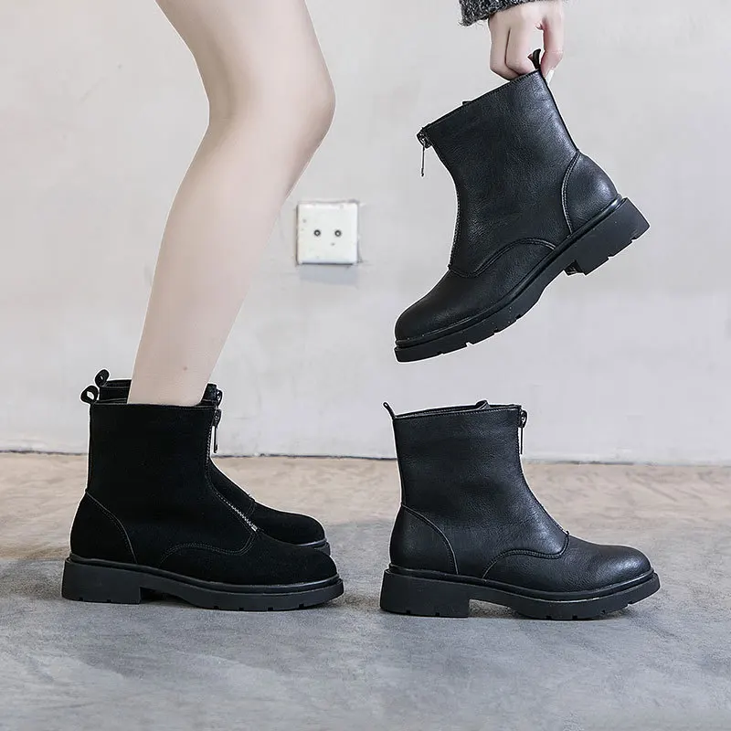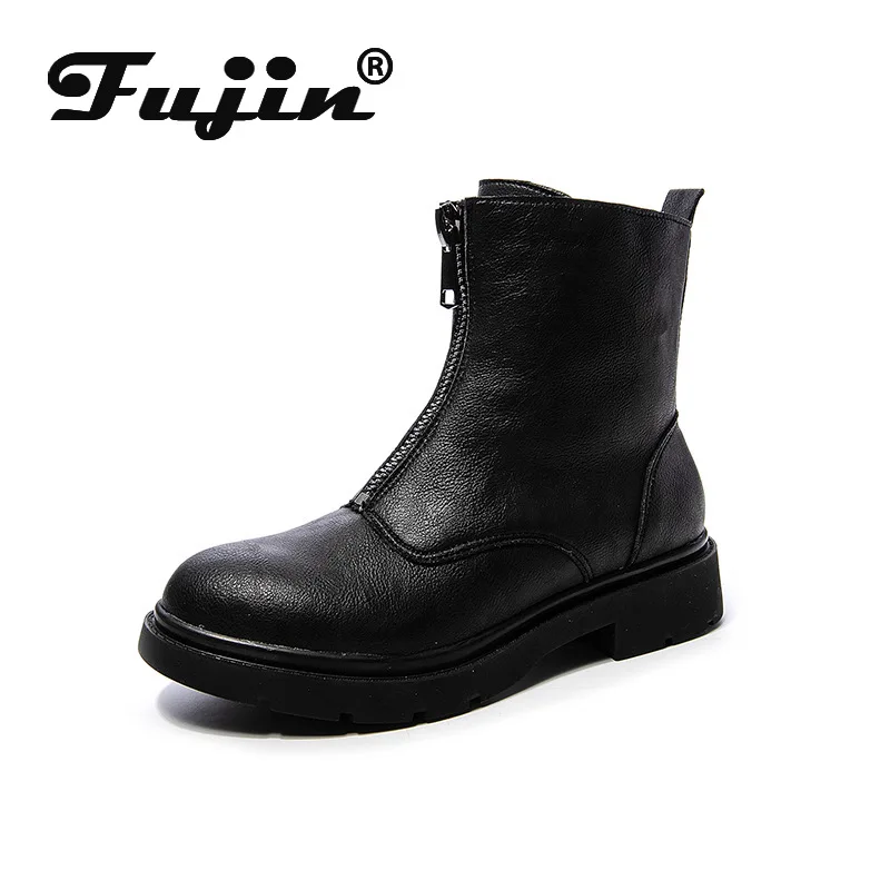Fujin2021 кожаные ботинки на плоской подошве; Дышащие Модные теплые женские короткие ботинки больших размеров; Женская Осенняя обувь на молнии спереди