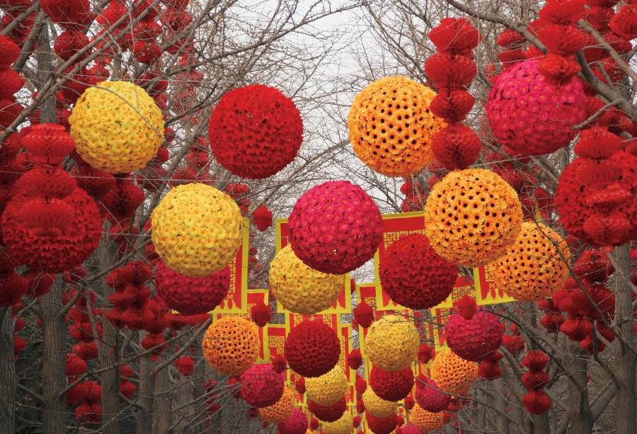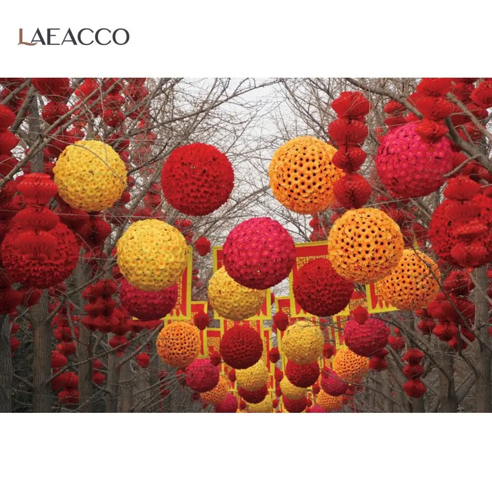 Фон Laeacco для фотосъемки с изображением китайских новогодних цветов фонариков деревьев праздвечерние в фотостудии