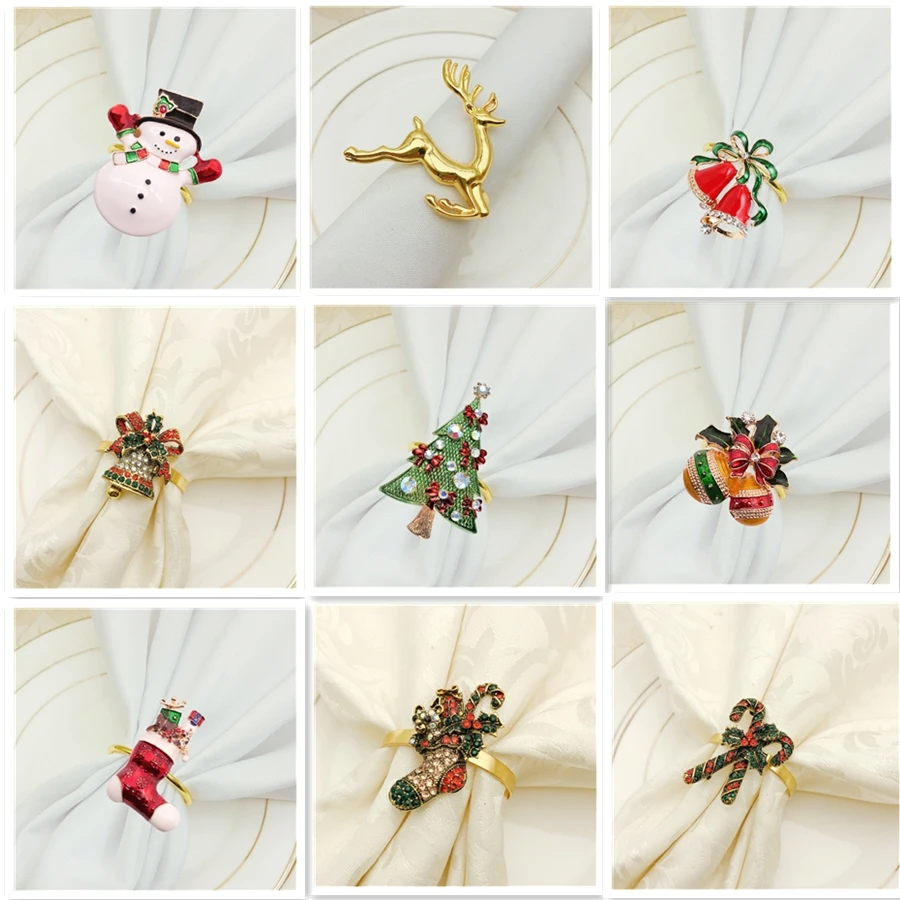 Высокая-конец Рождественская елка Салфетка кольцо, Бант цветочный венок рот кольцо пример отеля комната комплект Рождественского стола салфетки пряжки