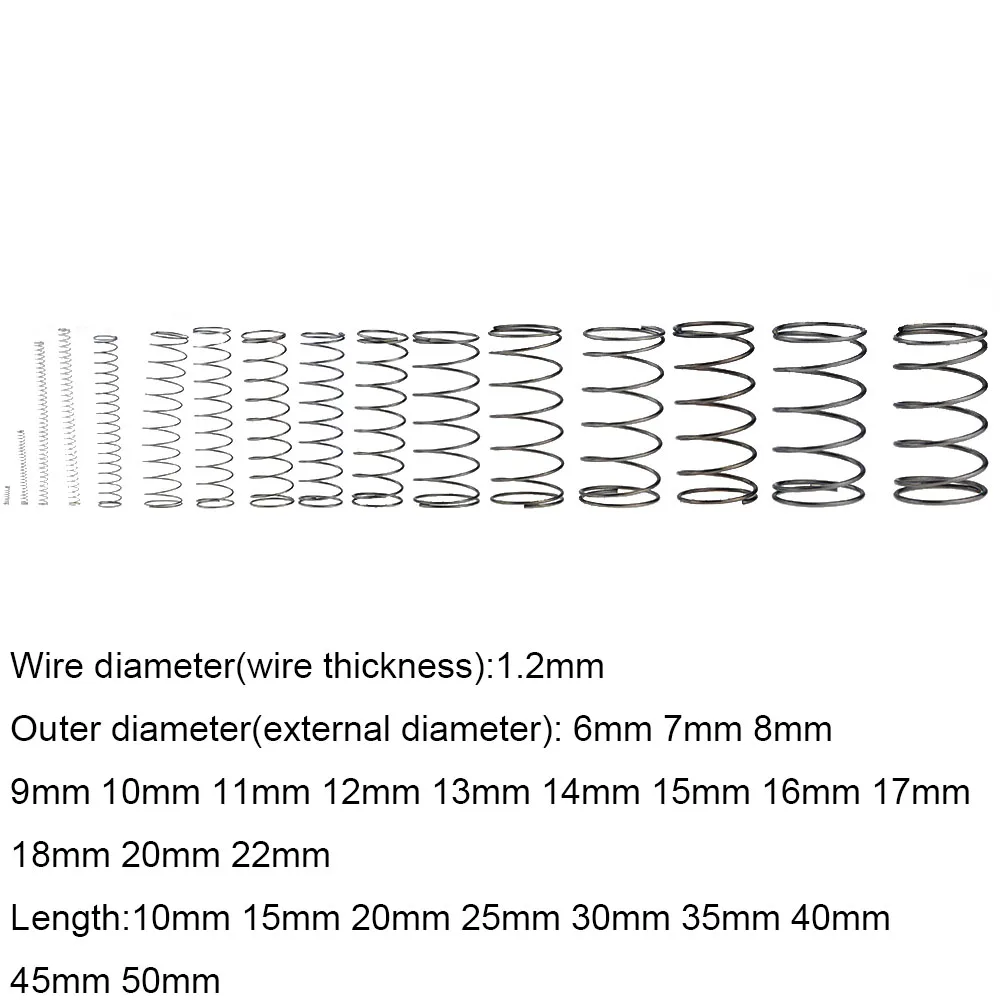 10 шт., 1,2*6 7 8 9 10 15 18 20 22*10-50 мм, пружинная стальная небольшая сжатия, механическая возвратная пружина, пружина OD 6 мм