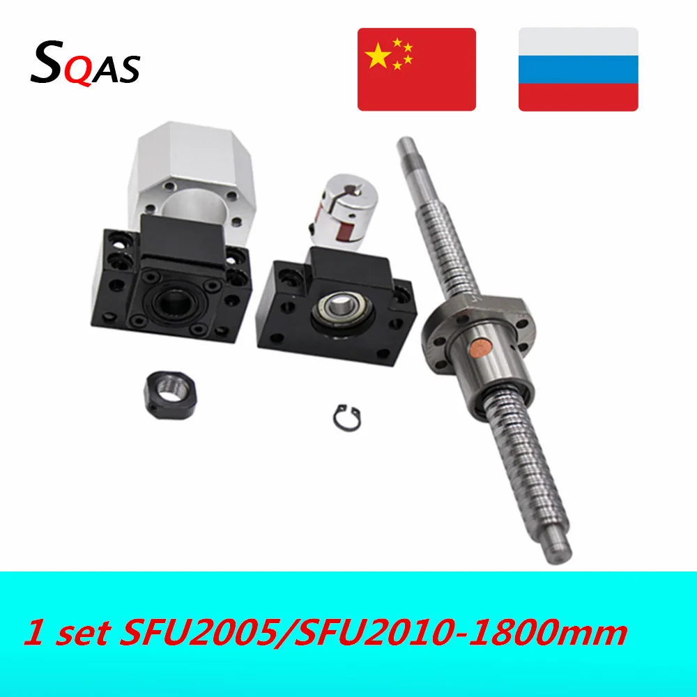 Комплект шариковых винтов с ЧПУ, 1800 мм, SFU2010, SFU2005, концевой шариковый винт, обработанный с помощью BK15 BF15, одна гайка, Корпус гайки, муфта для деталей ЧПУ