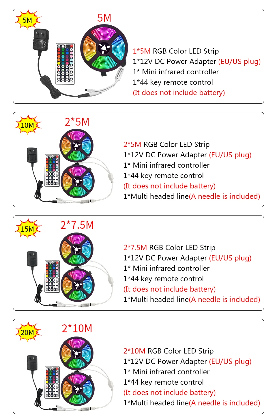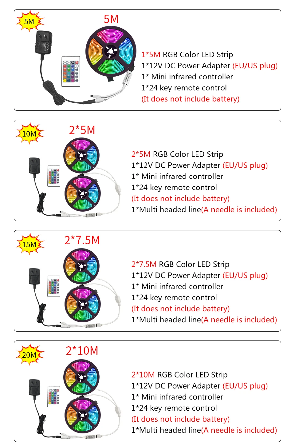 1. RGB 5050 светодиодные ленты (5M-1rolls * 5 м 10M-2 рулонов * 5 м 15M-2 рулонов * 7,5 м 20M-2 рулонов * 10 м)
