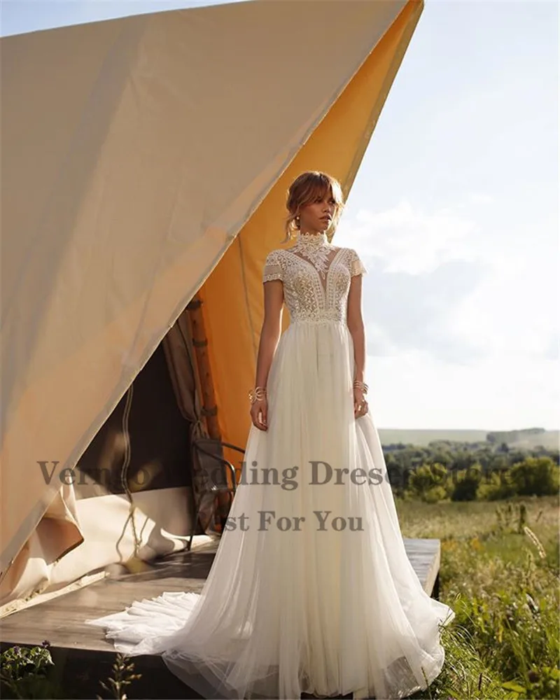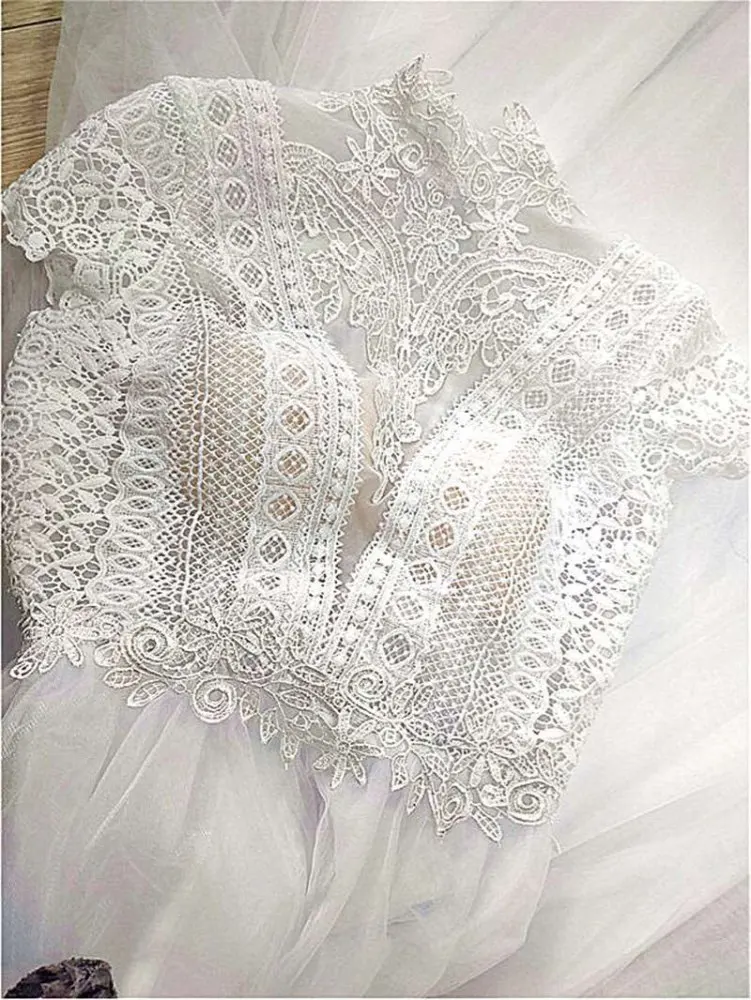 Платье свадебное из фатина и кружева, с коротким рукавом-крылышком