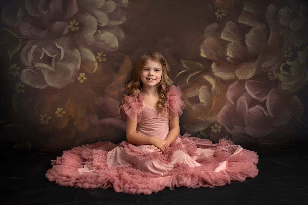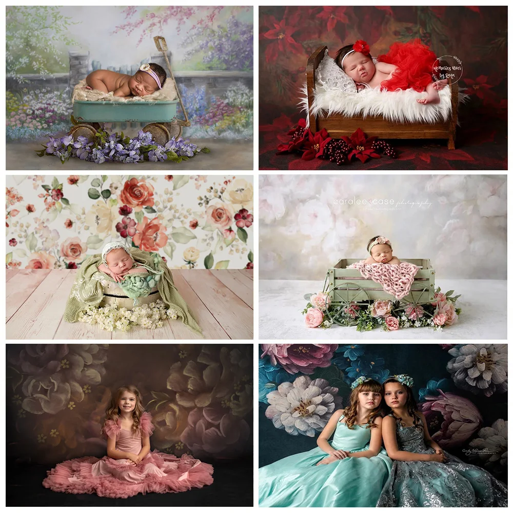 Фон для фотосъемки новорожденных детей с изображением цветов и торта