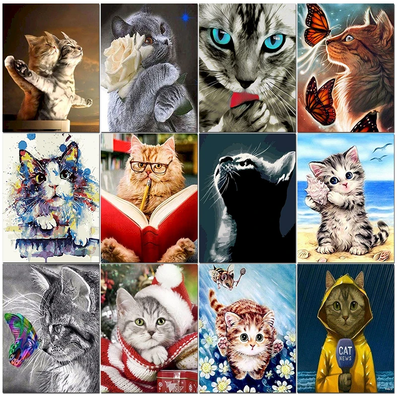 Картины по номерам, животные, кошка, подарок, Diy масляная краска по номерам, акриловая краска, абстрактная Современная Настенная картина, холст для детей и взрослых, комплект декора