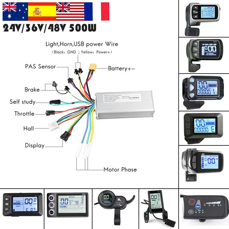 Контроллер: Стиль двигателя: бесщеточный Номинальное напряжение: 24 В 36 в 48 в Номинальная мощность: 500 Вт Ток: 25а (500 Вт) Использование для: электровелосипеда, ebike,e-scooter,e-car,e-golf car и т. д.