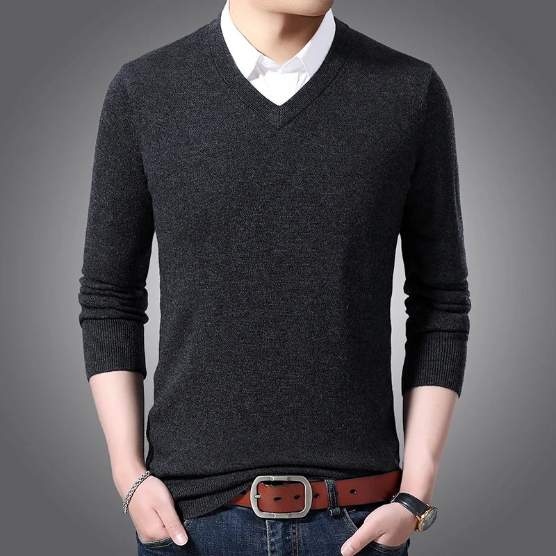 Свитер кашемировый мужской, однотонный, с длинными рукавами, на осеньзиму