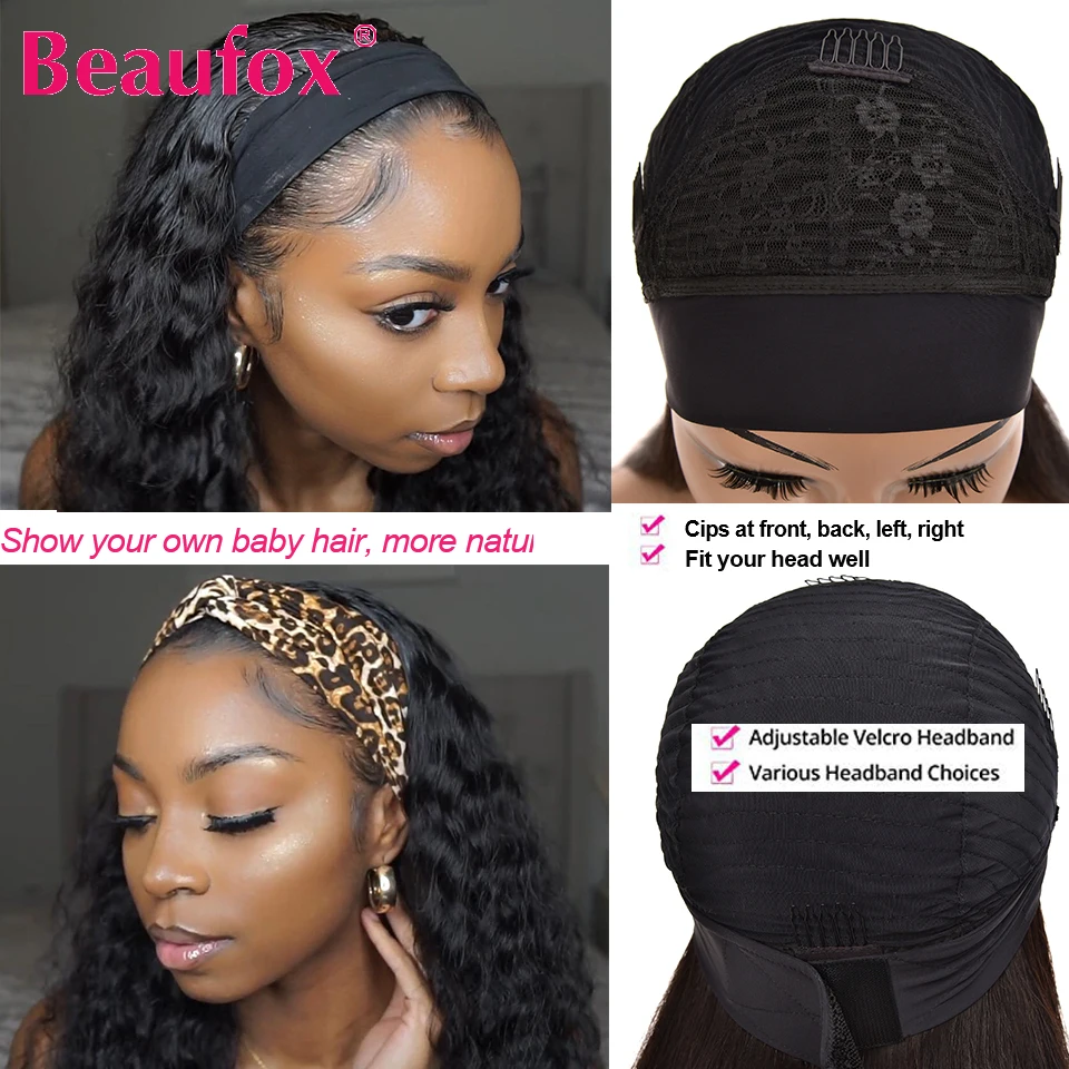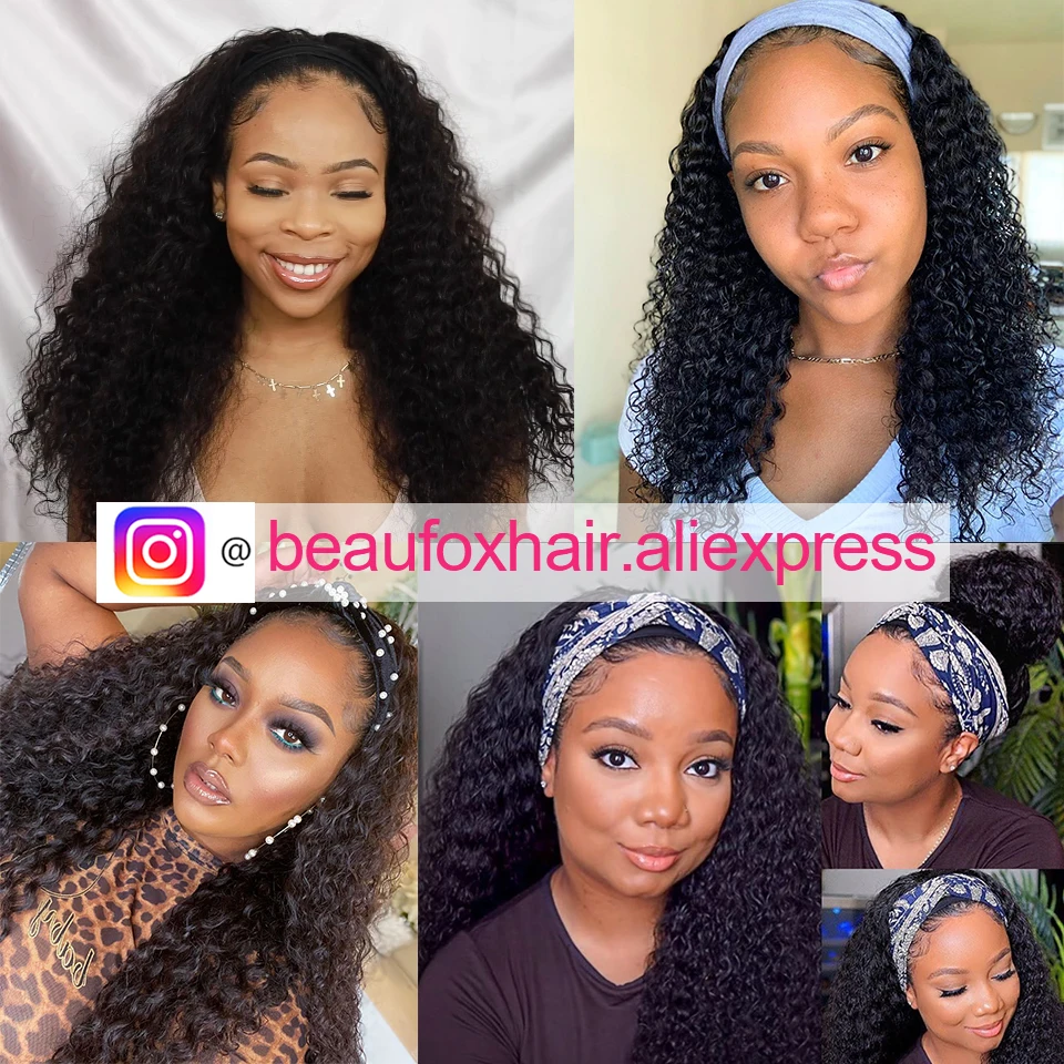 Beaufox глубокая волна парик с головной повязкой человеческие волосы парики для черных женщин бразильский манекен для шарфа парика без шнурка без клея Remy глубокие вьющиеся человеческие волосы парики