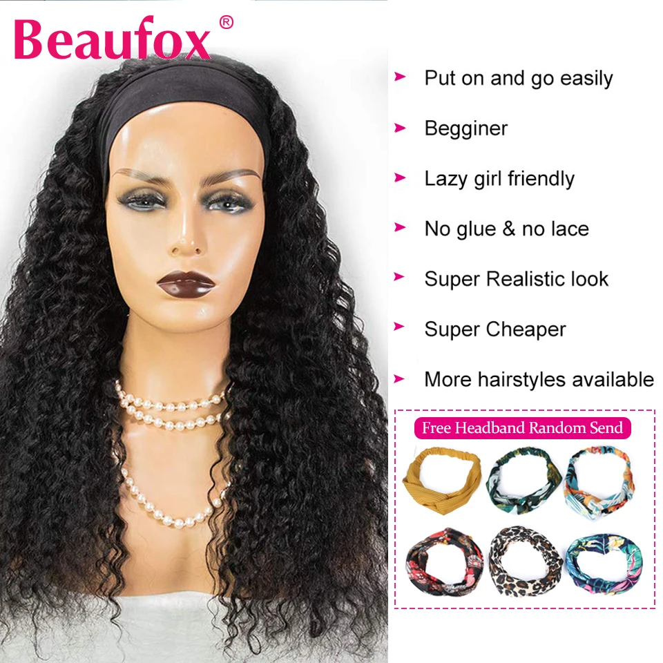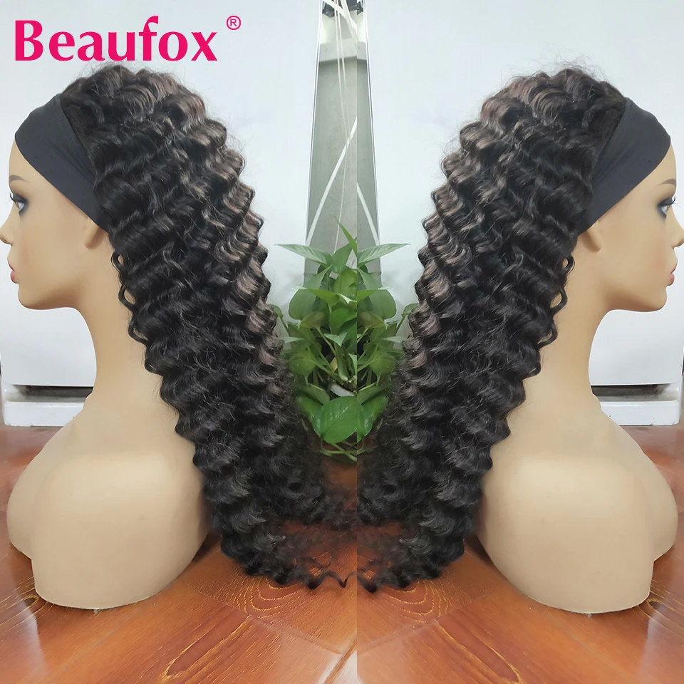Beaufox глубокая волна парик с головной повязкой человеческие волосы парики для женщин бразильский волос манекен для шарфа парика Glueless Remy глубокие вьющиеся человеческие волосы парики