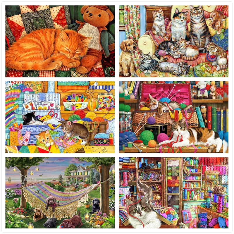 Алмазная картина 5D "сделай сам", квадратнаякруглая мозаика с изображением милого кота, вышивка крестиком, картина с животными, украшение для дома