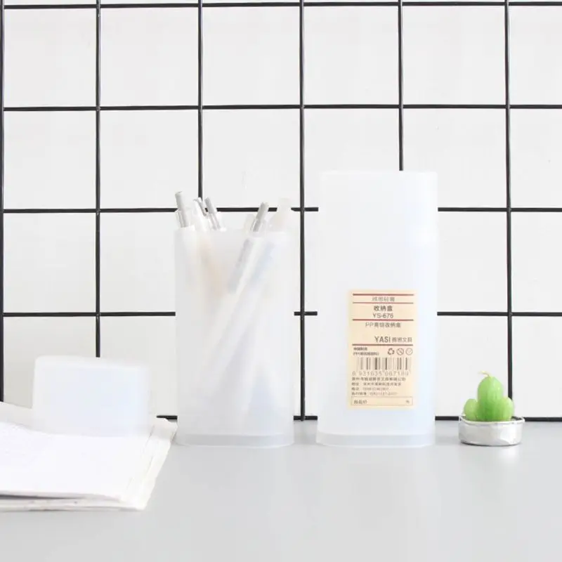 Настольный полупрозрачный держатель для коробка для ручек и карандашей с крышкой, школьные принадлежности R9JA