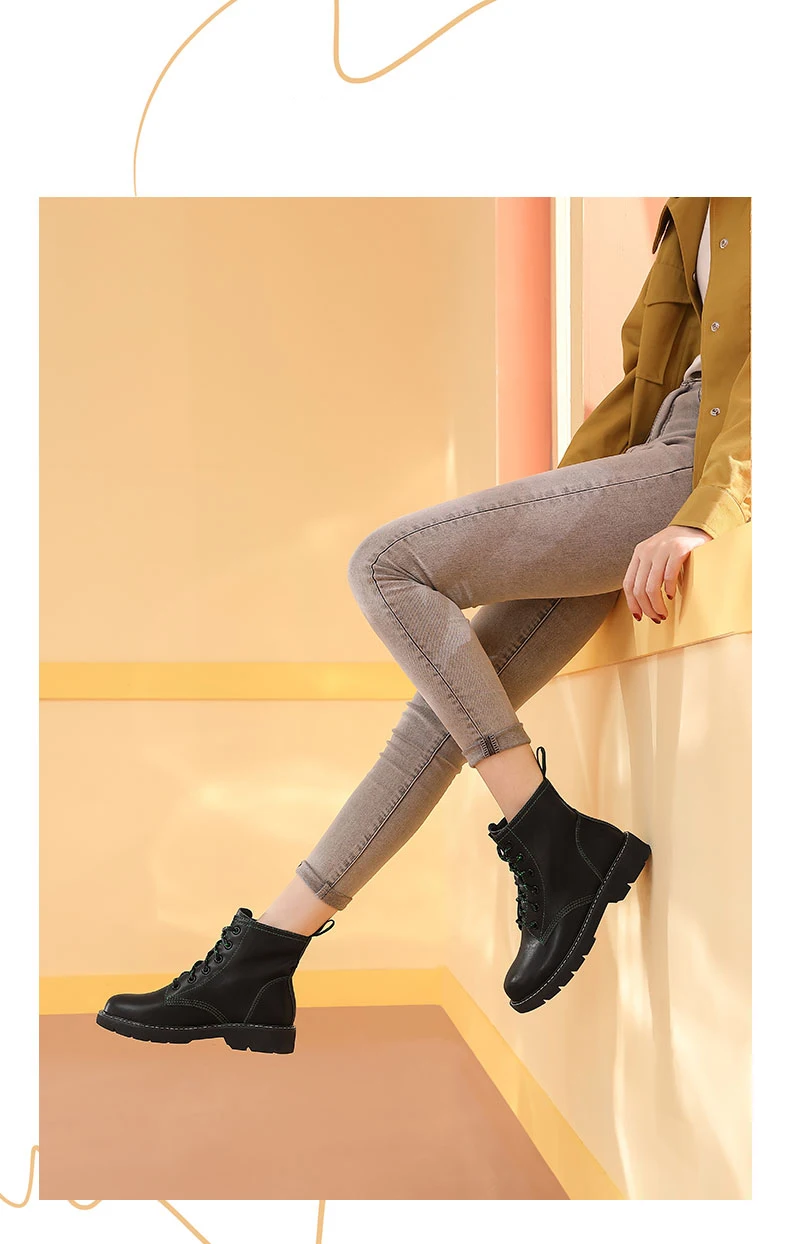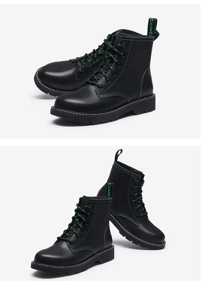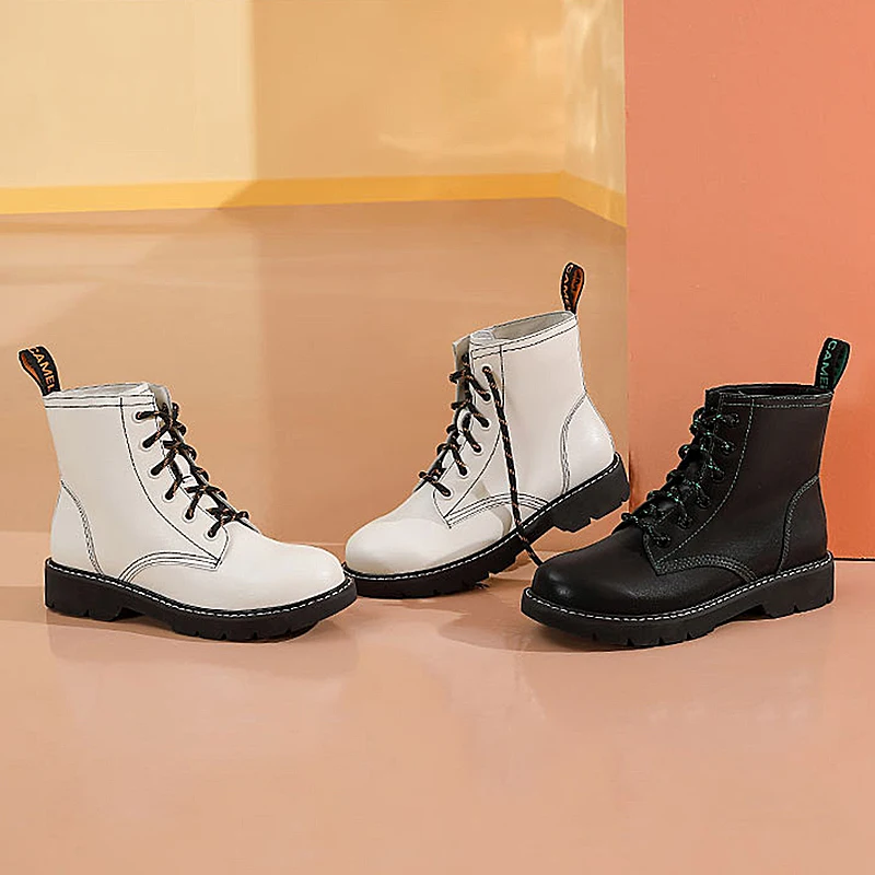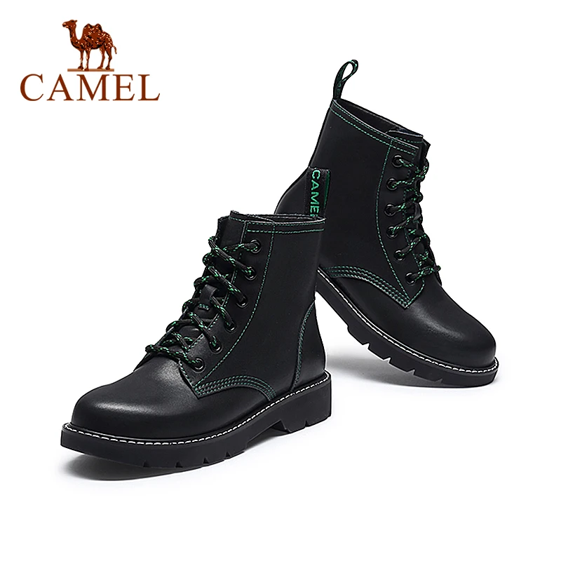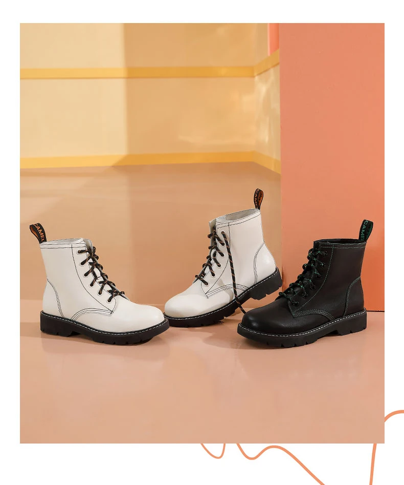 CAMELботильоны из натуральной кожи полусапожки на шнуровке в британском стиле Ботинки Martin женская обувь Новинка 2020 года; Сезон весна-осень; Цвет черный, белый
