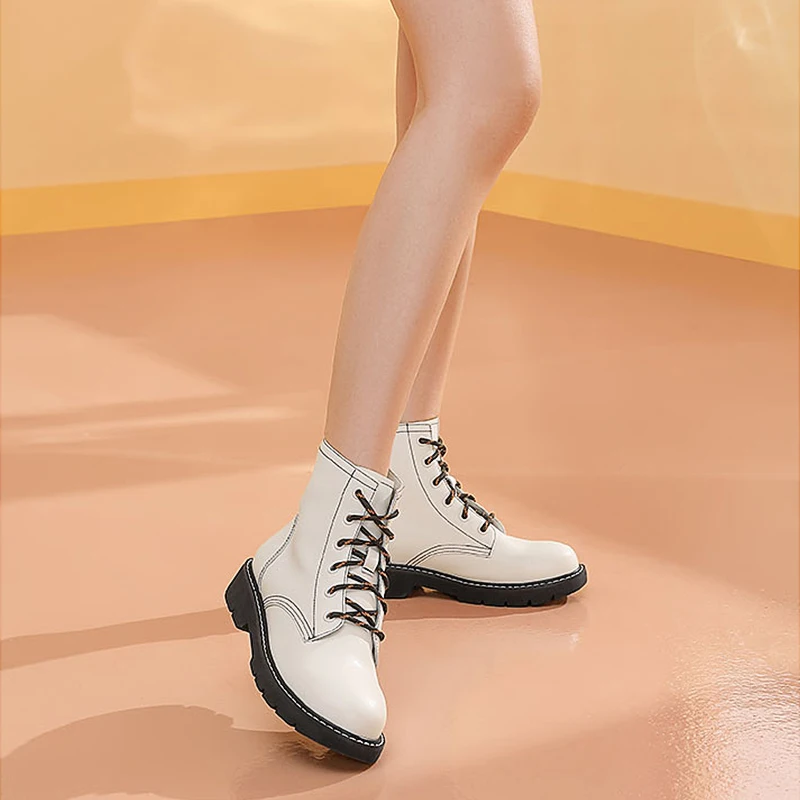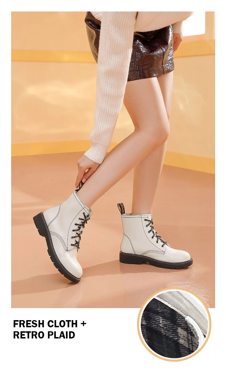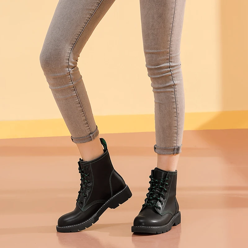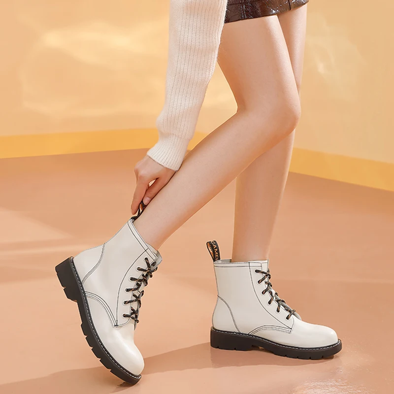 CAMELботильоны из натуральной кожи полусапожки на шнуровке в британском стиле Ботинки Martin женская обувь Новинка 2020 года; Сезон весна-осень; Цвет черный, белый