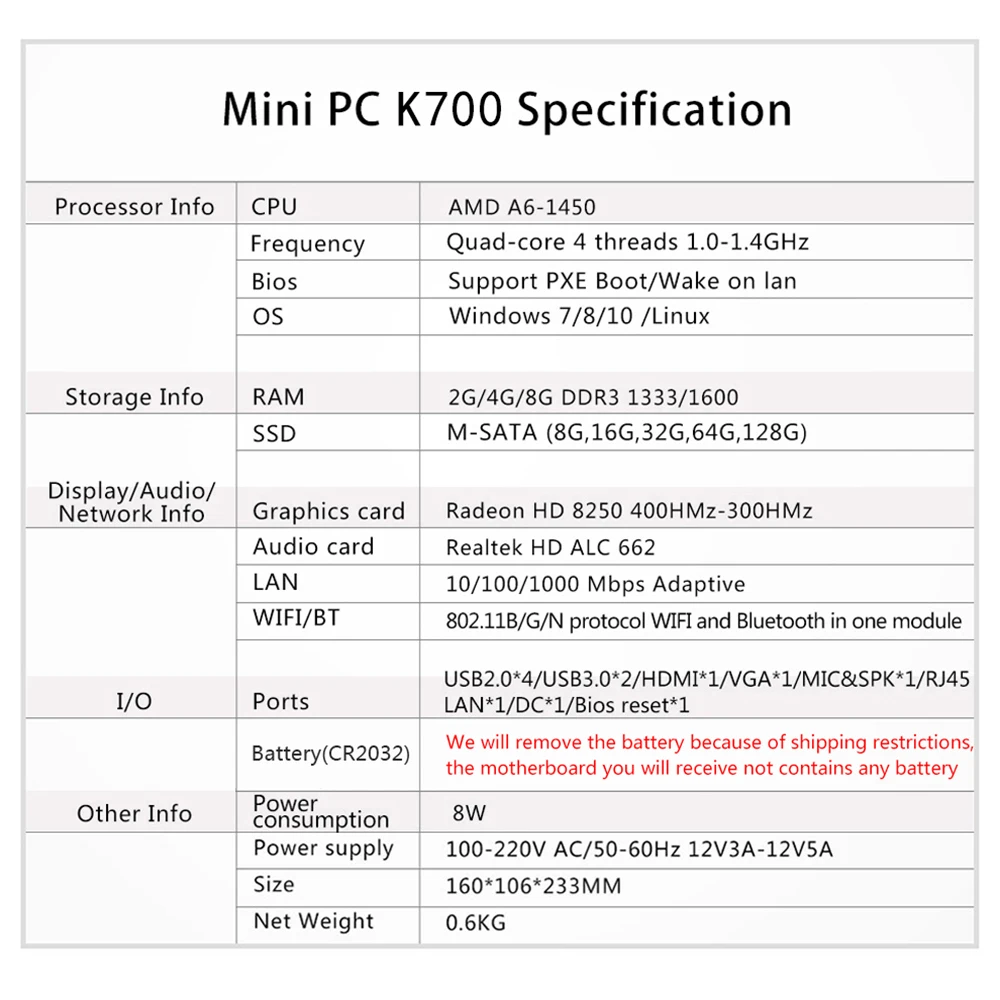 Мини-ПК K700Linux, четырехъядерный, без кулера, с поддержкой Wi-Fi, AMD, Windows 10, гигабитная локальная сеть, HDMI, VGA, промышленный Настольный игровой мини-компьютер