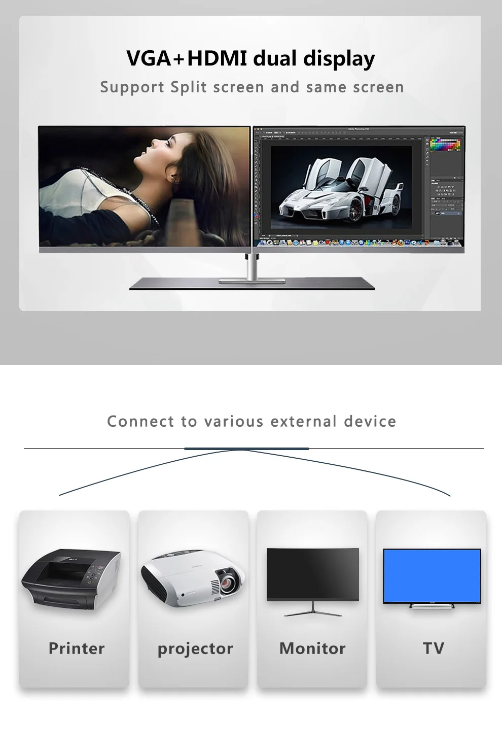 8. Порт с поддержкой двух дисплеев, HD-MI и VGA, что делает вашу работу двойной эффективностью;