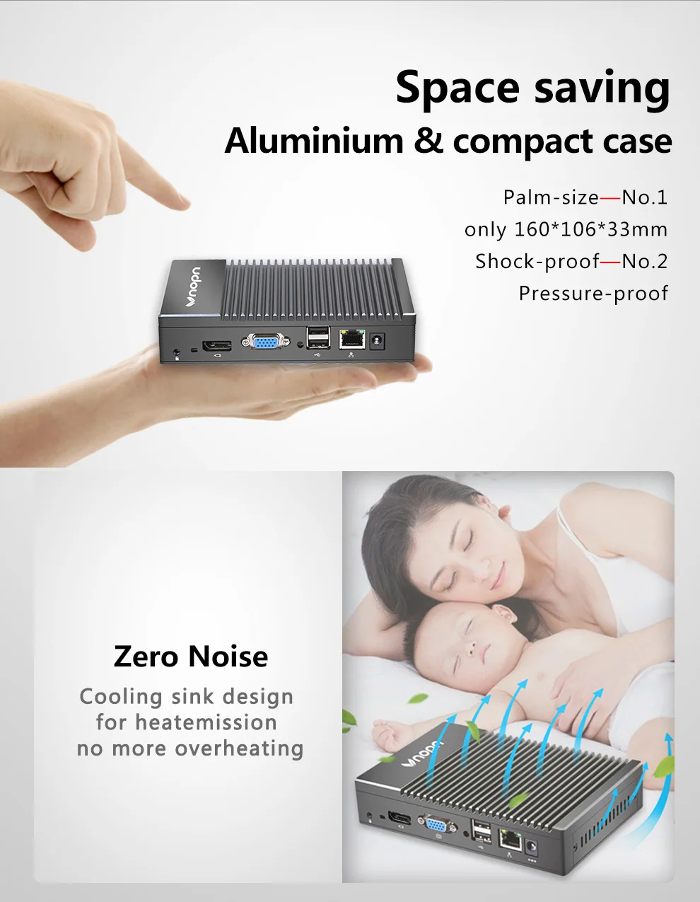 Безвентиляторный принцип охлаждения:Рабочая температура компьютерного чехла 55 ℃ ~ 60 ℃ находится в пределах нормы, так как принцип работы безвентиляторного дизайна, теплопередача от всей печатной платы к алюминиевому корпусу через радиатор, затем улучшит эффект нагревательного электронного компонента и срок службы.
