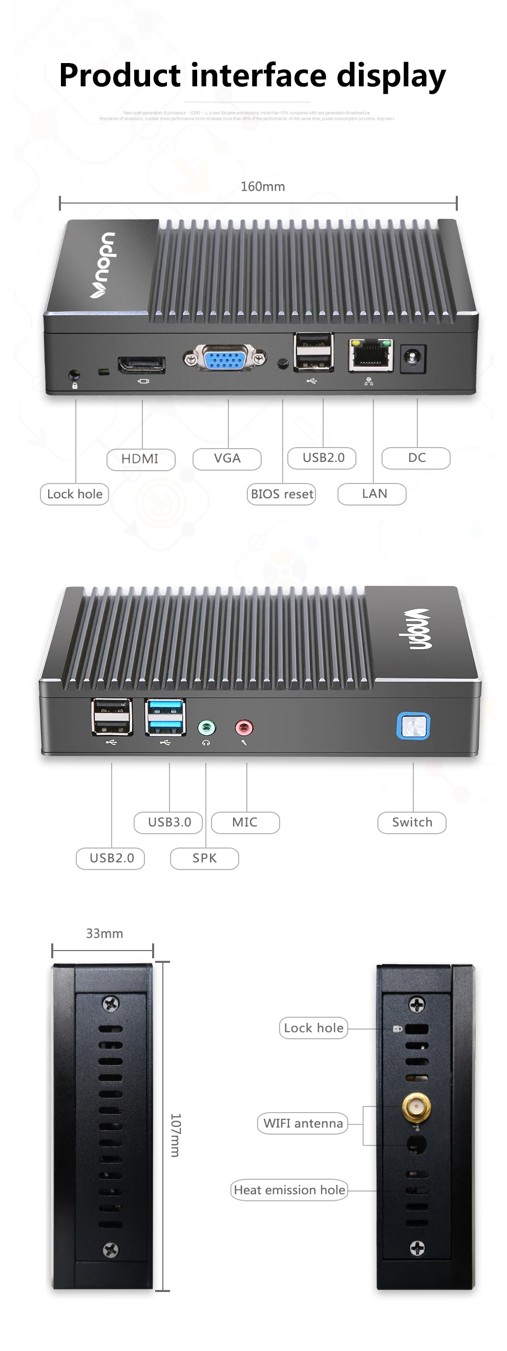 Порт ввода/вывода:HD-MI * 1 + VGA * 1 + LAN * 1 + SPK * 1 + MIC * 1 + USB * 6