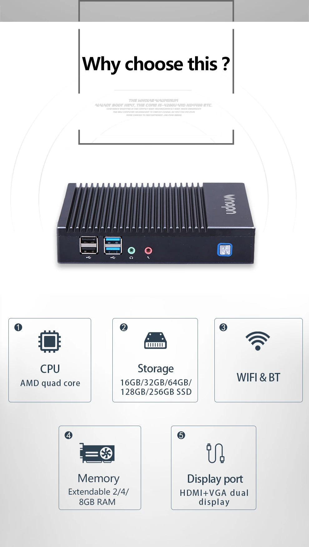 1. Встроенный четырехъядерный процессор AMD, достаточная производительность для ваших ежедневных вычислительных потребностей, это один высокоэкономичный мини-ПК;