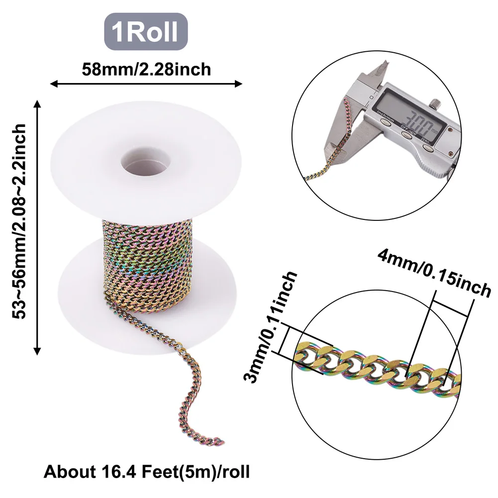 5 мрулон, разноцветная цепь из нержавеющей стали 304