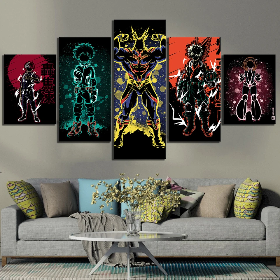 5 шт. абстрактное искусство HD мультфильм моя геройская Академия аниме постер боку нет героев Академия картины на холсте картины на стену