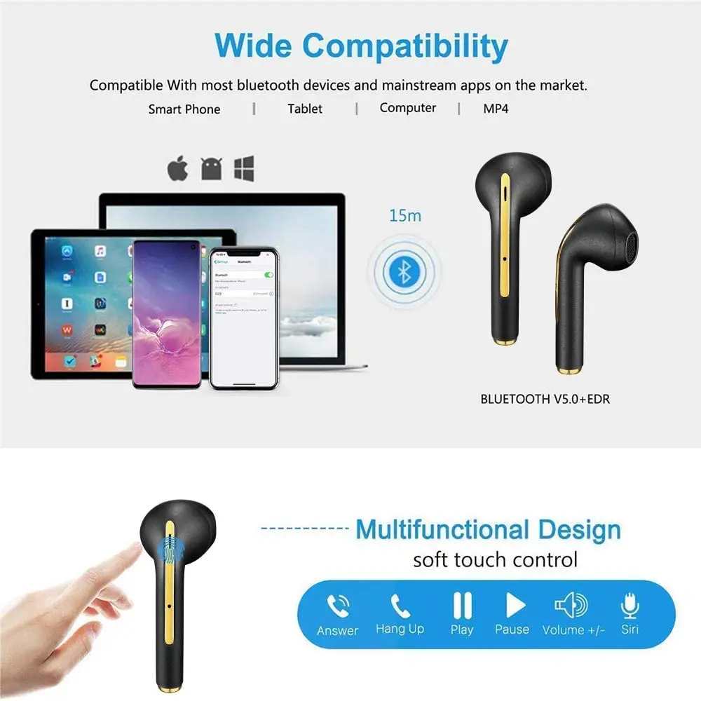 Feature 3TWS Earbuds True Wireless Bluetooth Earphone Headphones