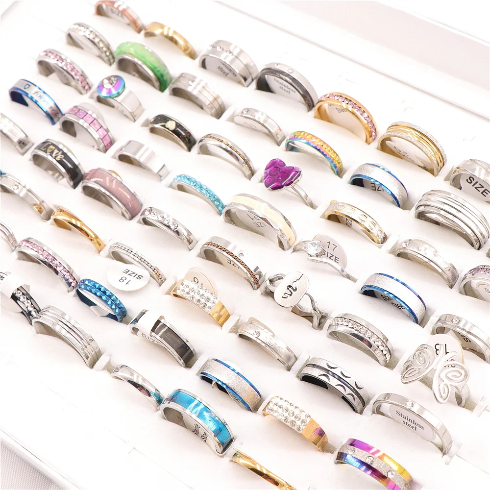 Материал: нержавеющая стальМужской размер: 17-18-19-20-21-22 ммЖенский Размер: 16-17-18-19-20-21 ммКоличество: 20 шт./лотЦвет: разноцветныйСтиль: смешанный стиль отправляется случайным образом