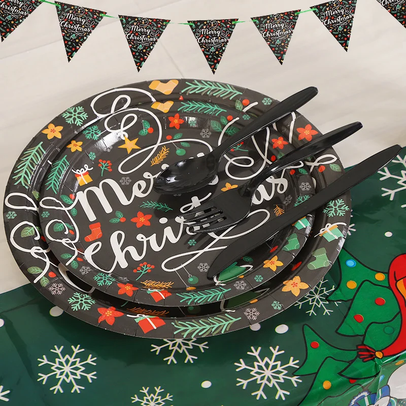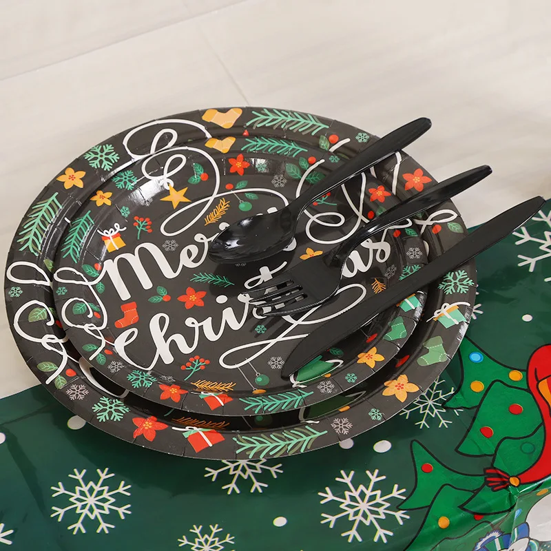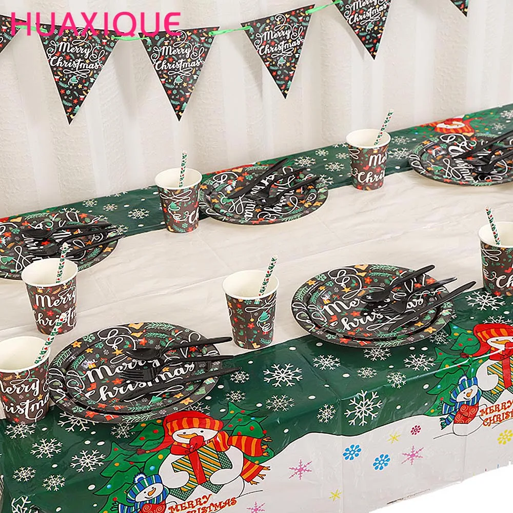 Одноразовые наборы посуды для вечевечерние на Рождество, бумажные тарелки, салфетки, чашки, товары для рождественской вечеринки, Новогоднее украшение