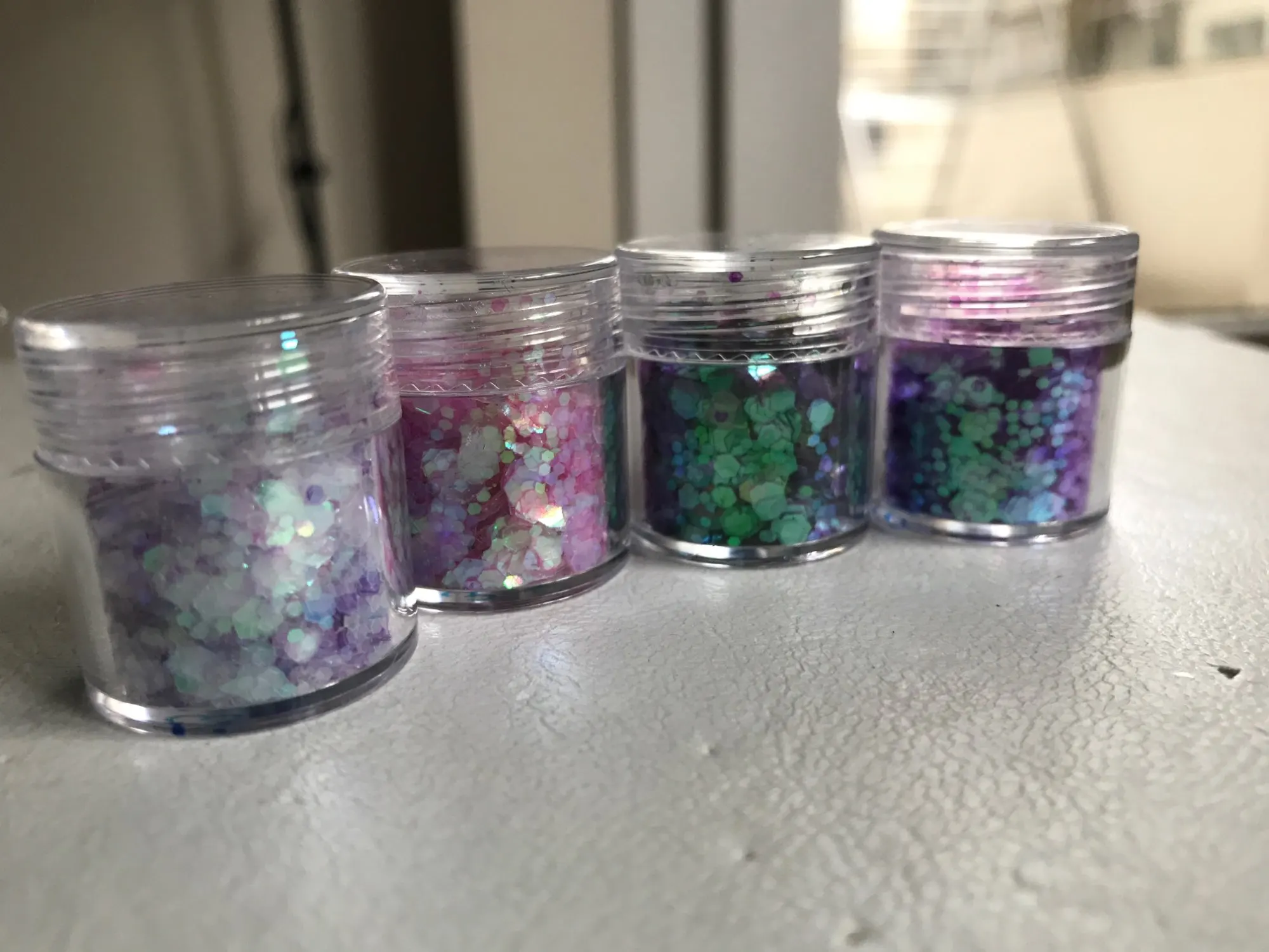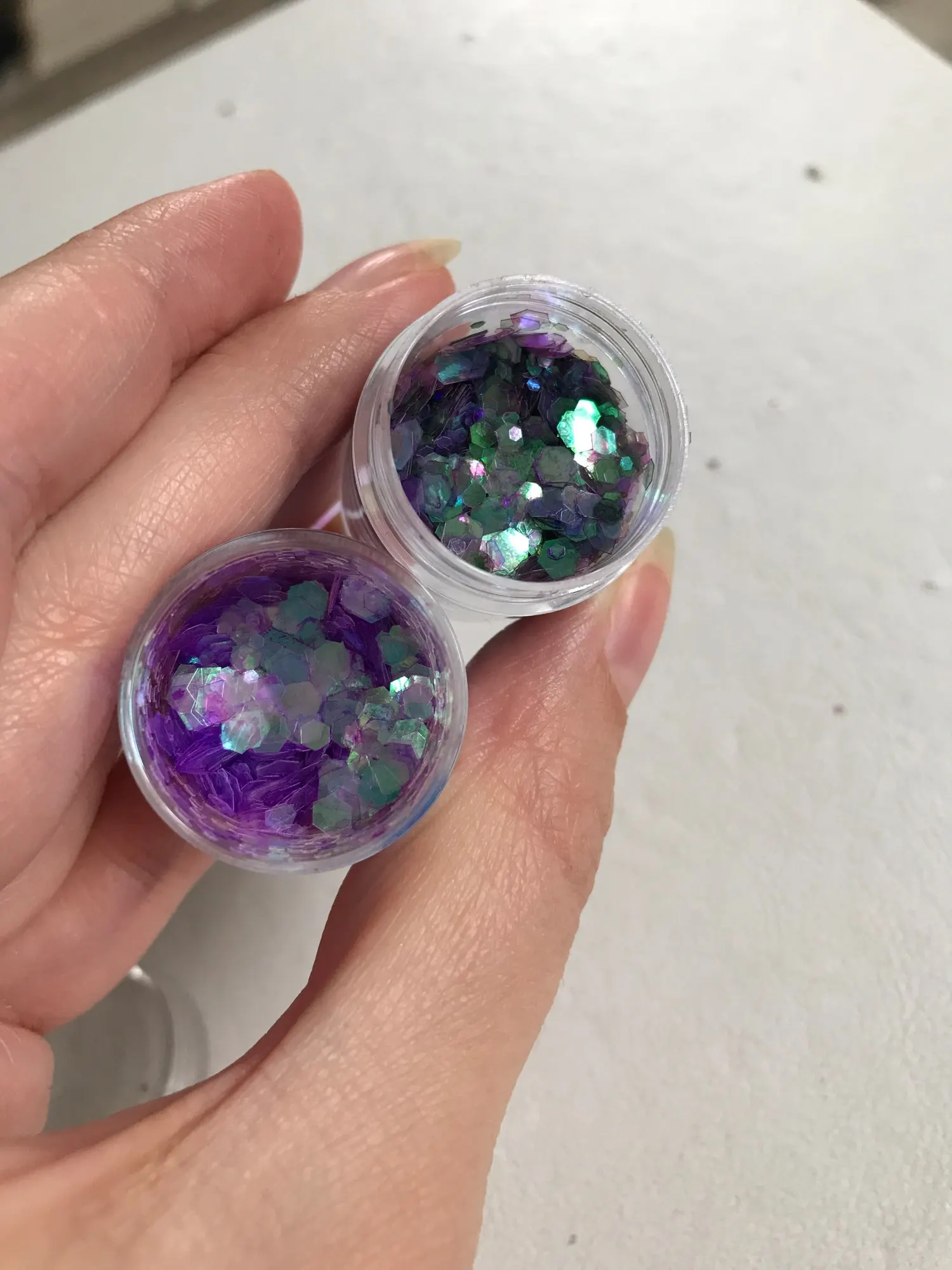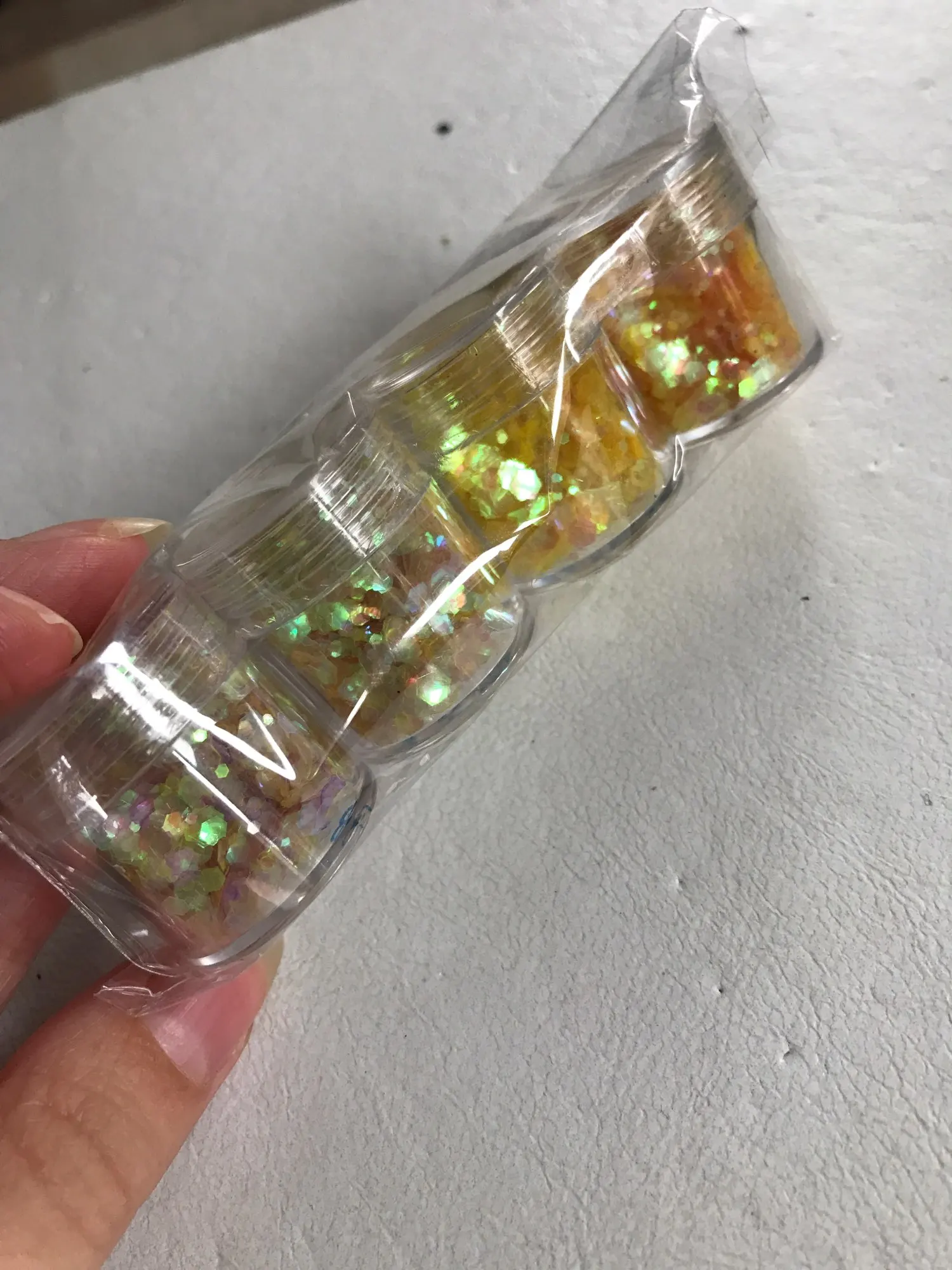 4 бутылкиупаковка, шестигранные блестки УФ-отверждаемая эпоксидная смола, 1-3 мм