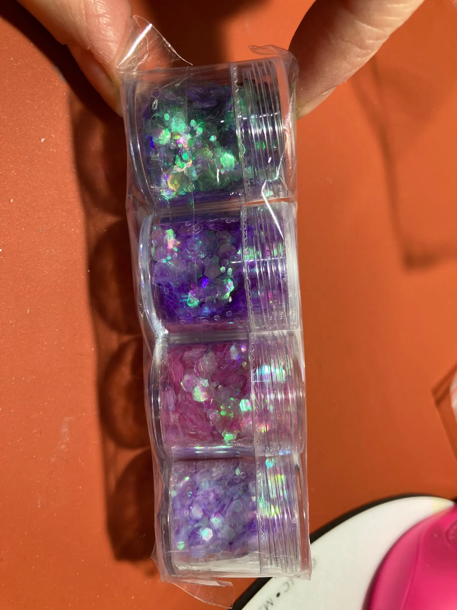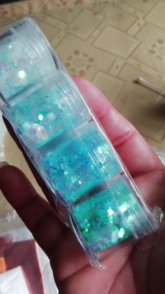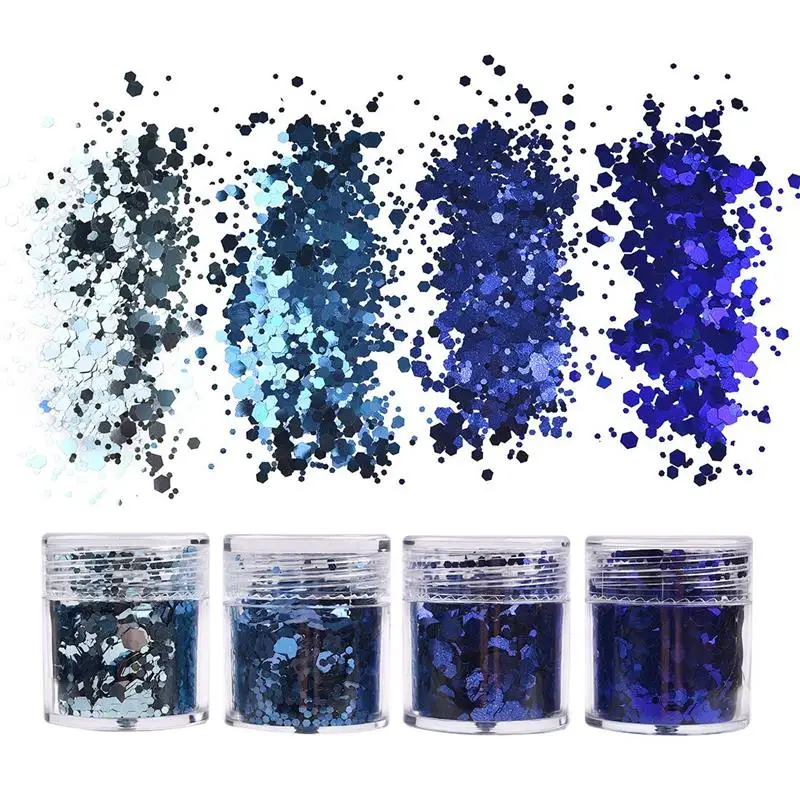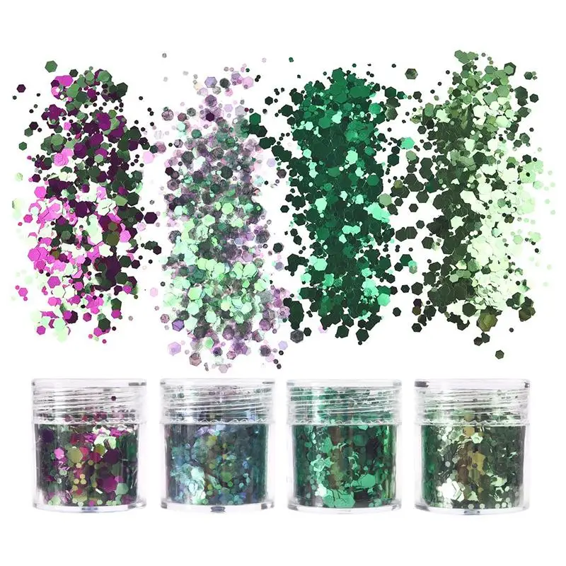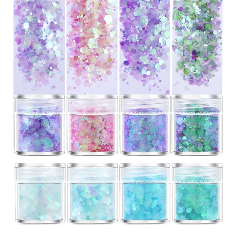 4 бутылкиупаковка, шестигранные блестки УФ-отверждаемая эпоксидная смола, 1-3 мм