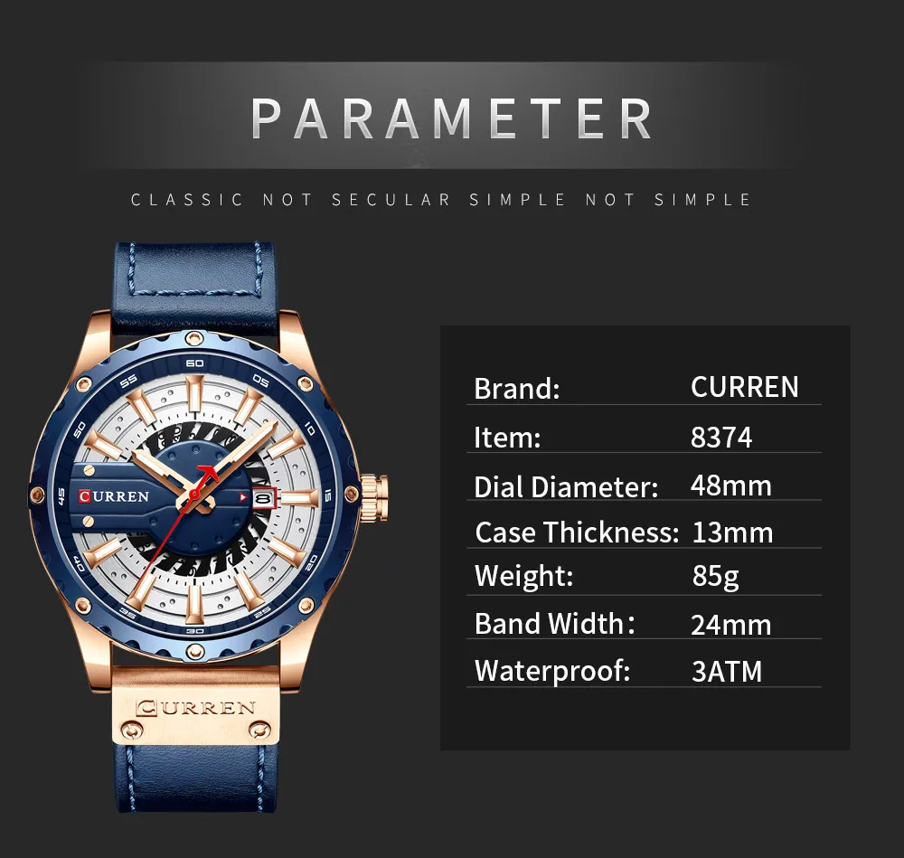 CURREN наручные часы для мужчин кварцевые кожаные синие мужские час...