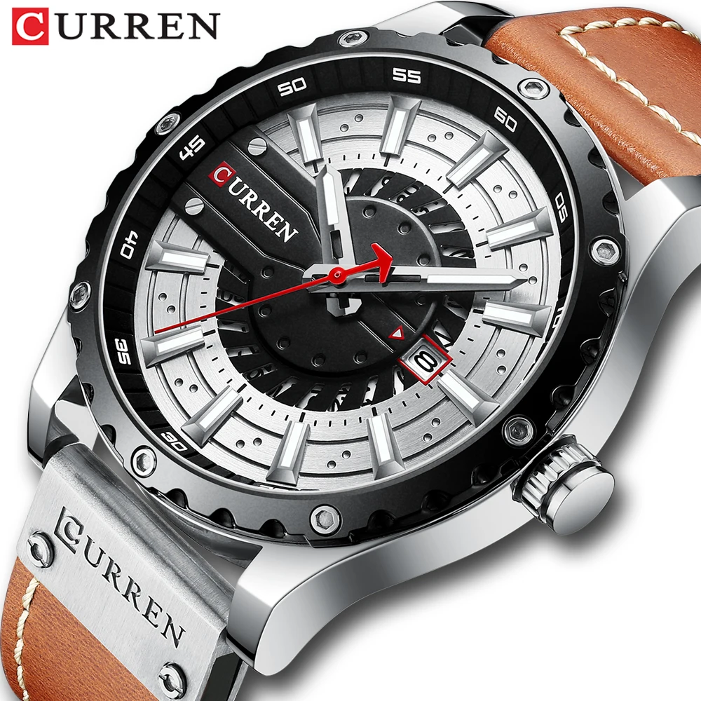 Мужские часы CURREN, повседневные наручные часы с кожаным ремешком,...