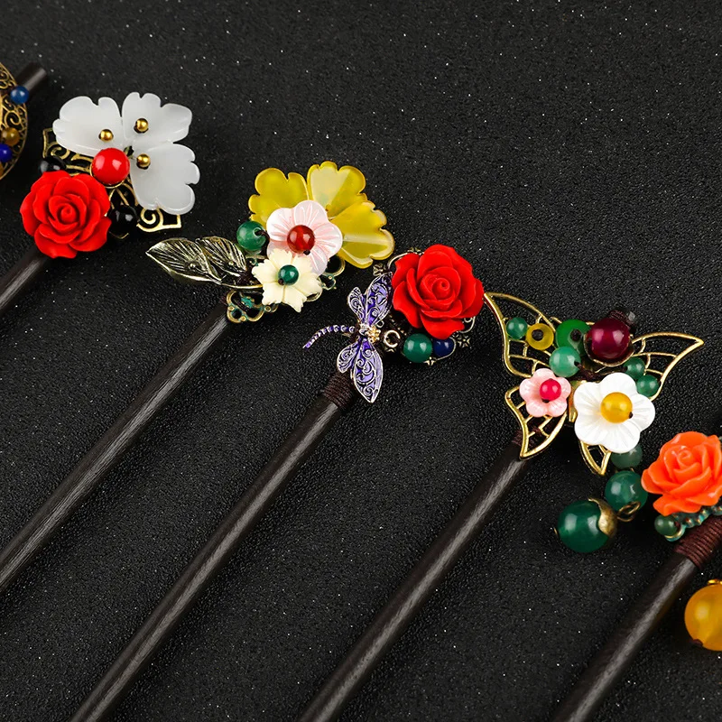 Пинцет для волос ручной работы из китайского эбенового дерева, аксессуары для одежды, для повседневного использования, для самообороны, безопасный головной убор для женщин, деревянная палочка против волков