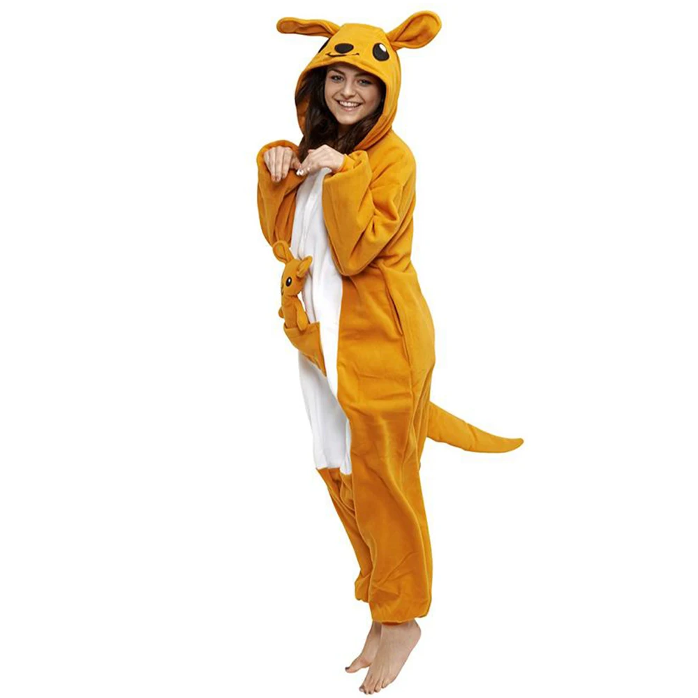 Пижама для взрослых и женщин, одежда для сна из флиса, пижама в виде животного, кенгуру, Детская Пижама, комбинезон, домашняя одежда, зимняя Милая Пижама вечерние НКИ
