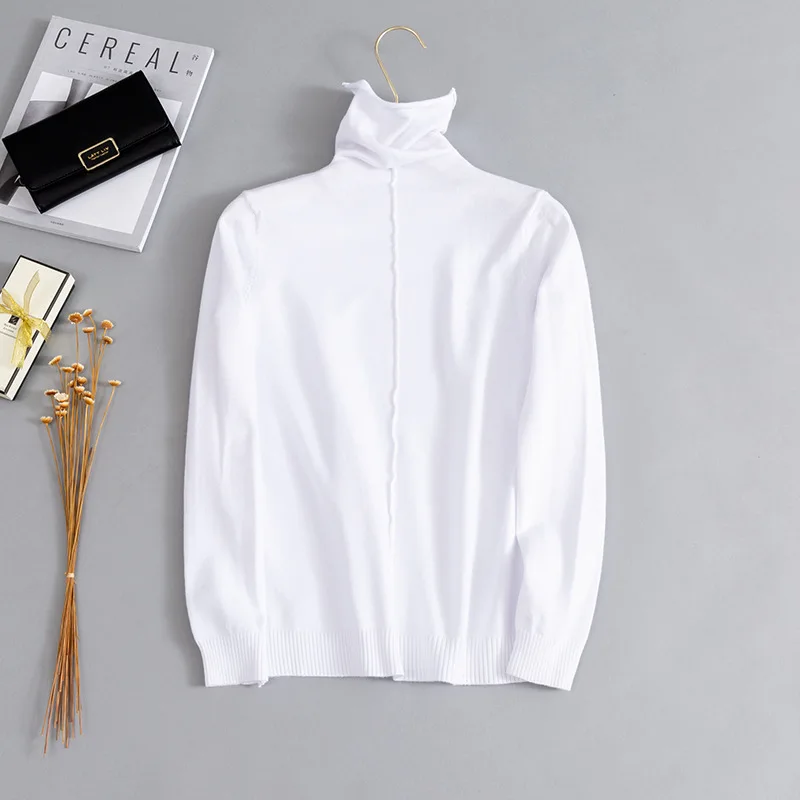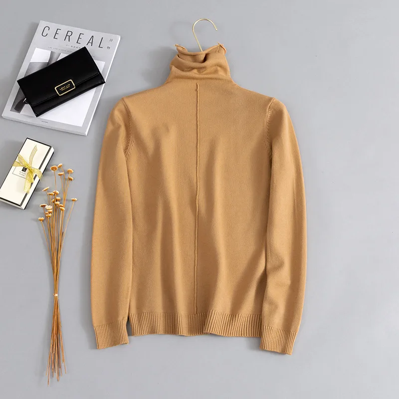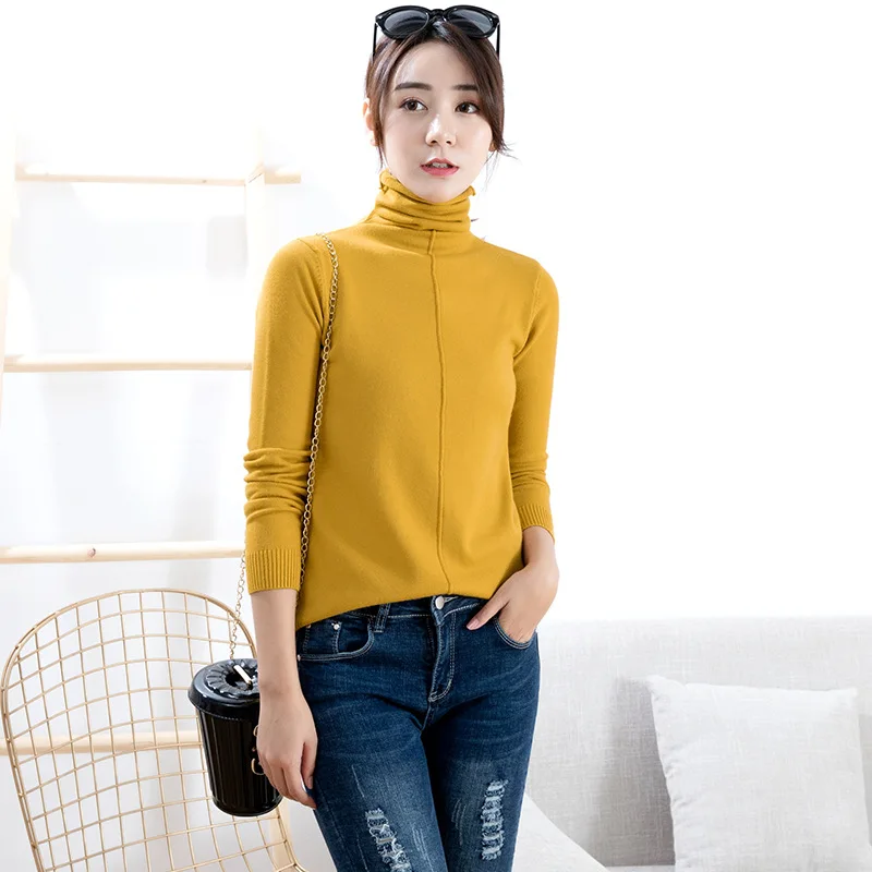 Высококачественные однотонные базовые вязаные свитера для женщин, сезон осень-зима 2020, повседневный пуловер с длинным рукавом и высоким воротником, женский розовый джемпер