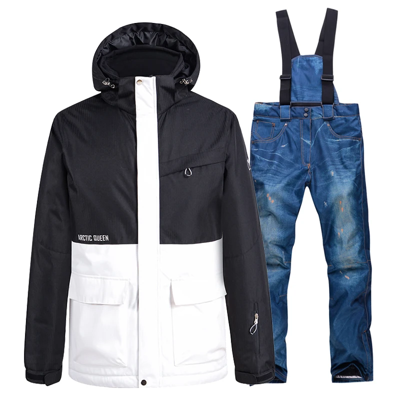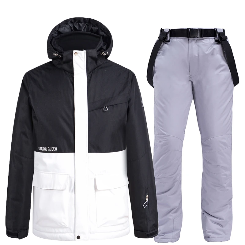 Лыжный костюм для мужчин и женщин, черно-белая комбинированная зимн...