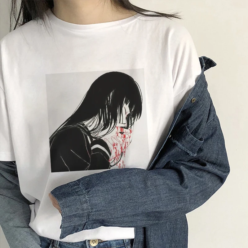Футболка женская с графическим принтом в японском стиле аниме, белая, с круглым вырезом