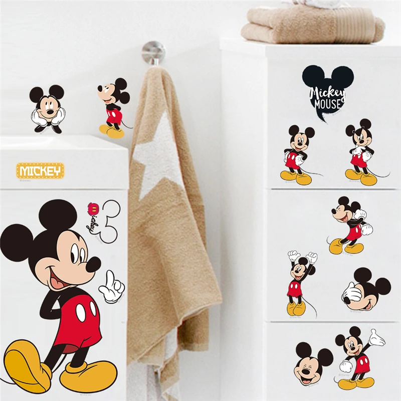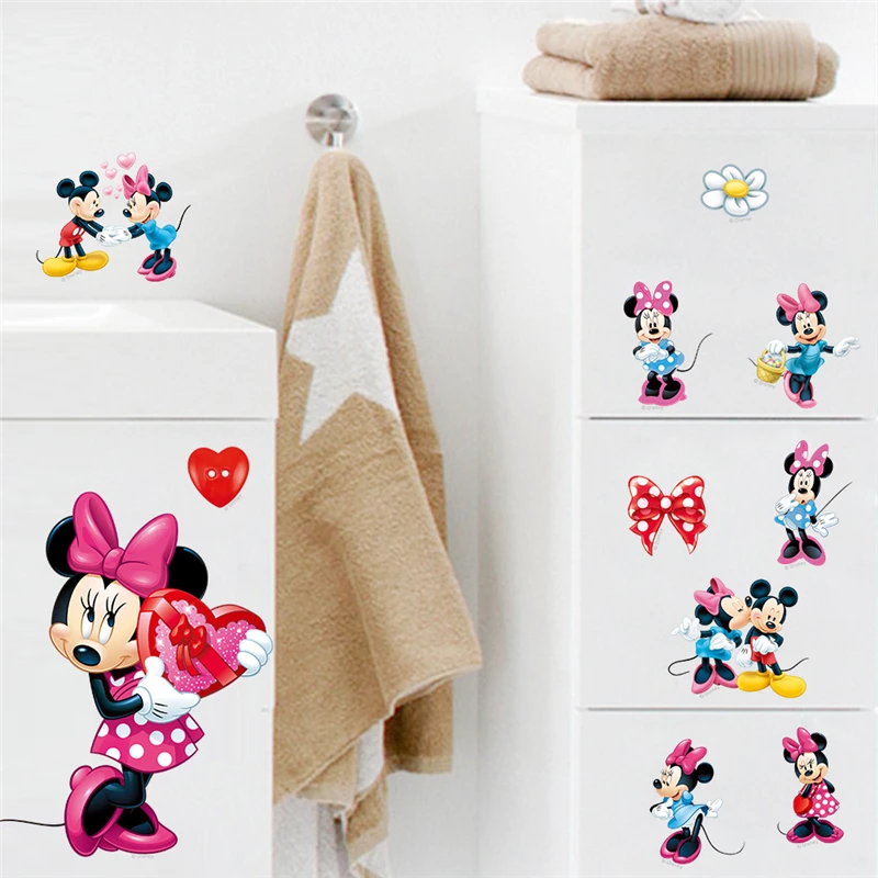 Disney Микки Минни Маус наклейка для детской спальни Водонепроницаемая Съемная наклейка для спальни домашний Декор Аксессуары Мультяшные настенные наклейки JE