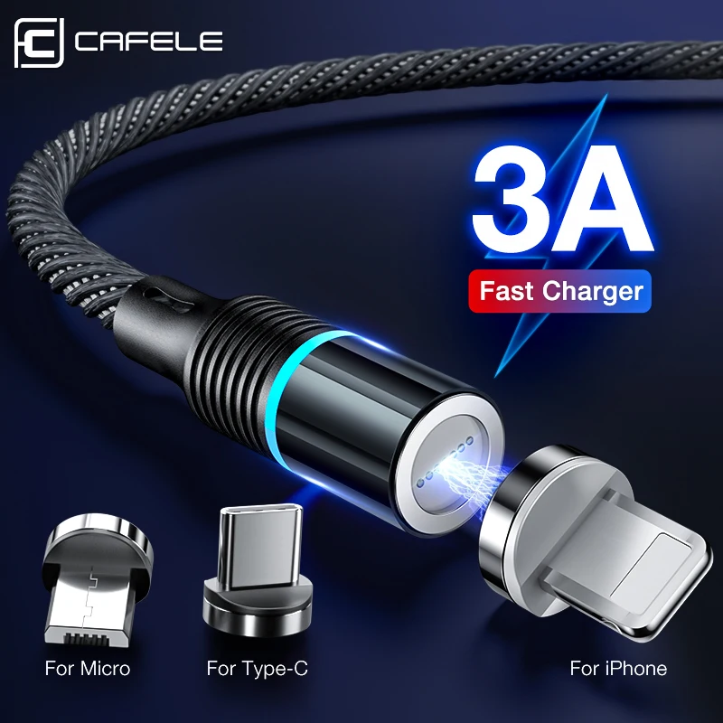 Магнитный зарядный кабель CAFELE 3A Micro USB C для iPhone 11 Pro Max 8 Sumsung, магнитное зарядное устройство