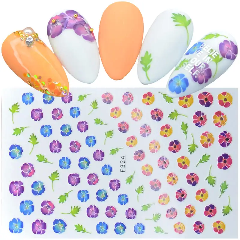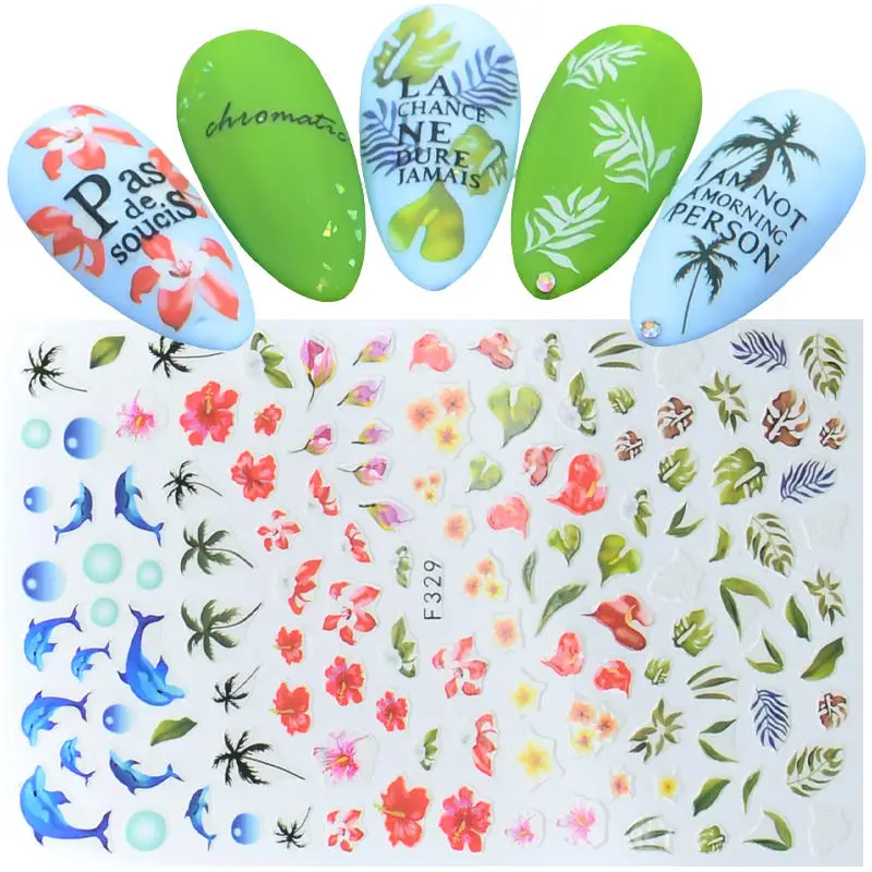 1 лист, 3D наклейки для ногтей, клейкие наклейки, цветы, листья, ге...