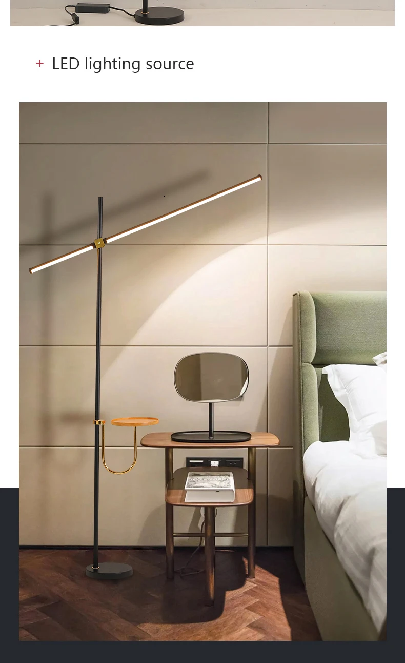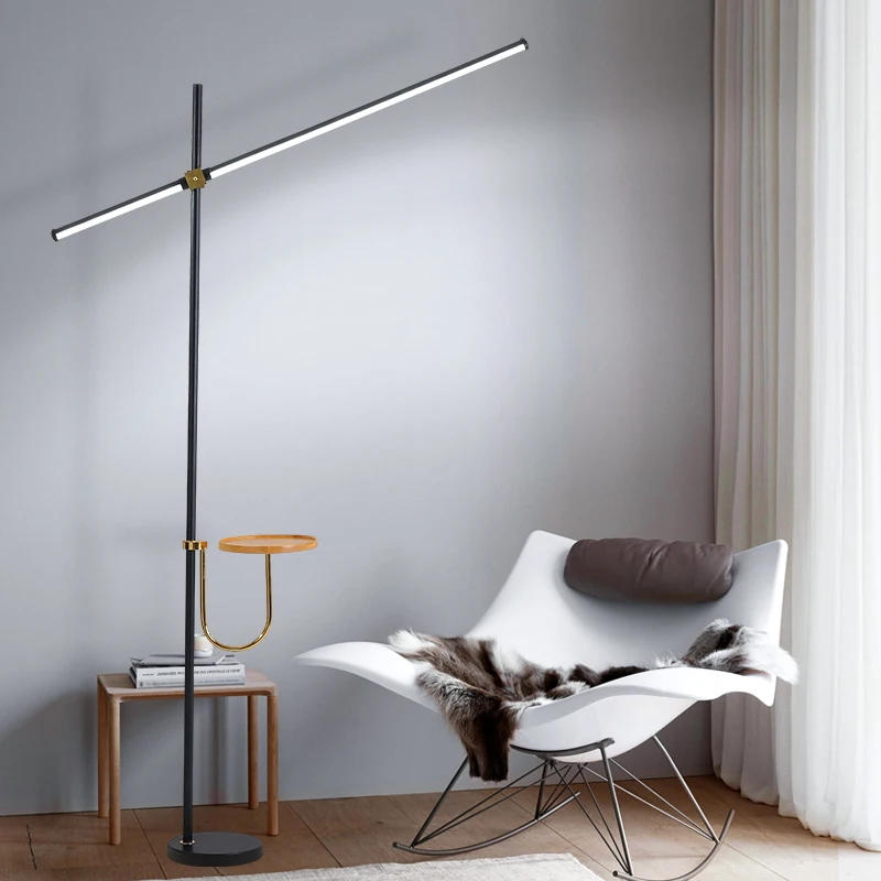 Скандинавская черная простая торшер, алюминиевая стоячая лампа длиной напольного освещения для фойе, спальни, гостиной, светодиодные светильники