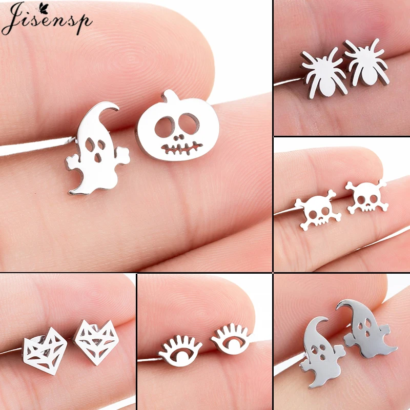 Маленькие серьги-гвоздики из нержавеющей стали для женщин и девочек, минималистичные серьги в виде черепа, призрака, тыквы, хеллоуин, лучший подарок для друга