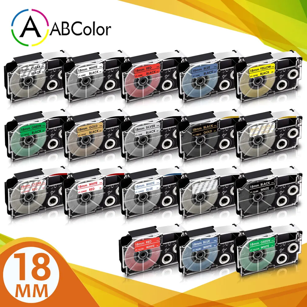 Название позиции: ABColor 18 цветов XR-18X XR-18WE этикетки для CASIO 18 мм XR-18X XR-18YW лента этикетки картриджи для CASIO KL-60 KL-120 KL-430 производитель этикеток