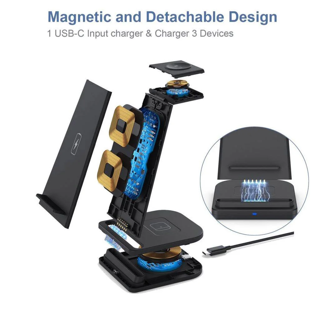 Беспроводная зарядная станция 3 в 1 FDGAO Qi, 15 Вт, для iPhone 13, 12, 11, XS, XR, X, 8, Apple Watch SE 7, 6, 5, 4, 3, Airpods Pro