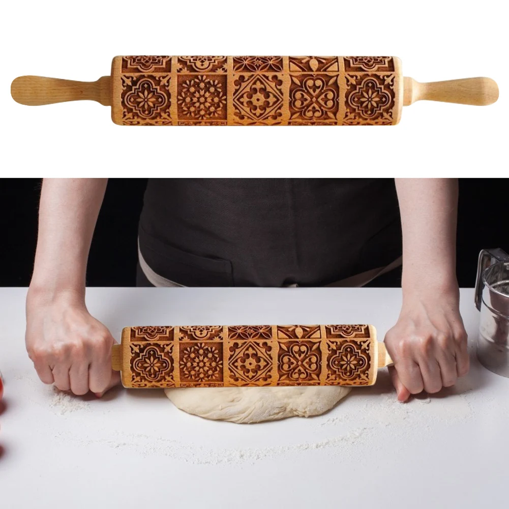 Деревянная скалка для тиснения, помадка для торта, теста, печенья, лапши, печенья, винтажный узор, гравированный валик