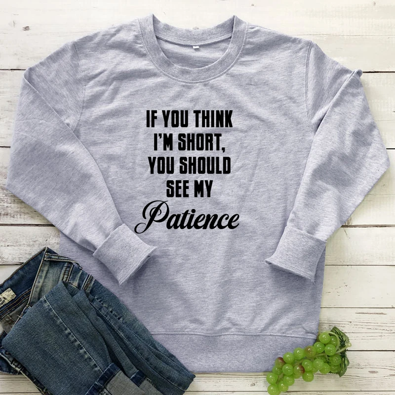 Если вы считаете меня коротким, вы должны увидеть мое терпение, толстовка, повседневный женский джемпер с длинным рукавом, пуловеры, уличная одежда