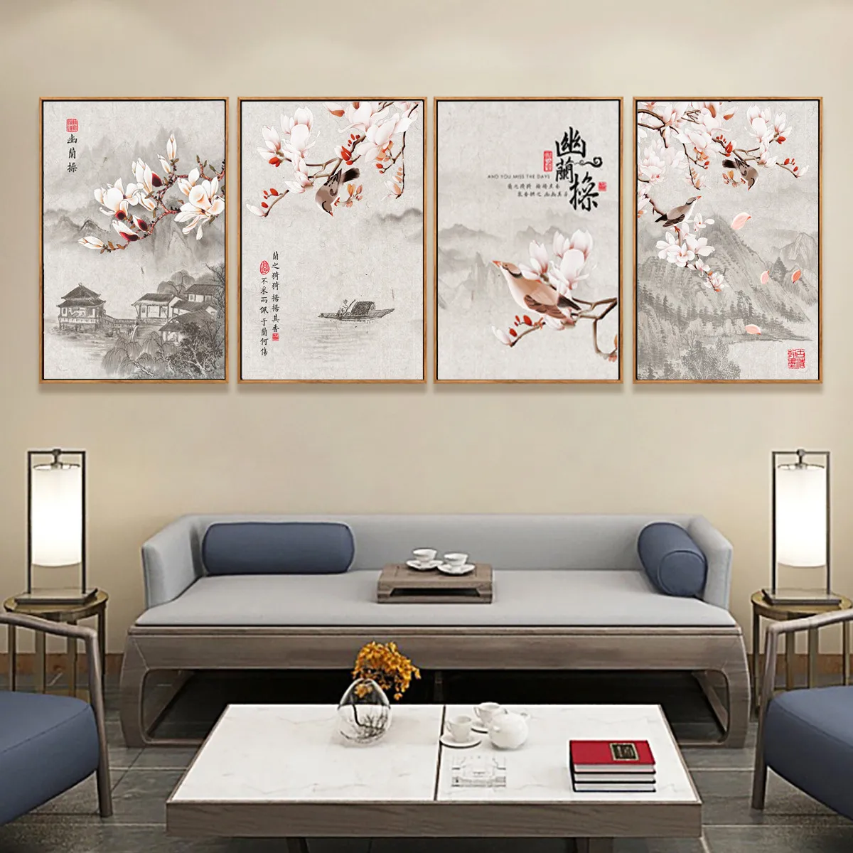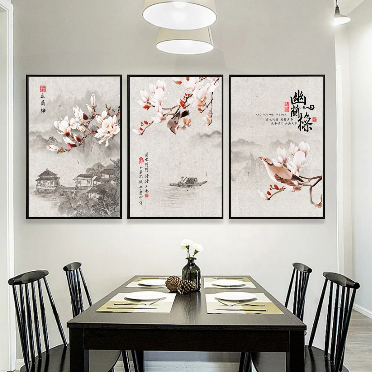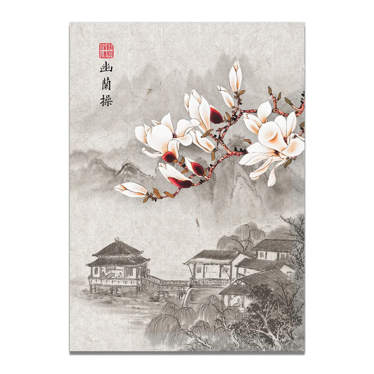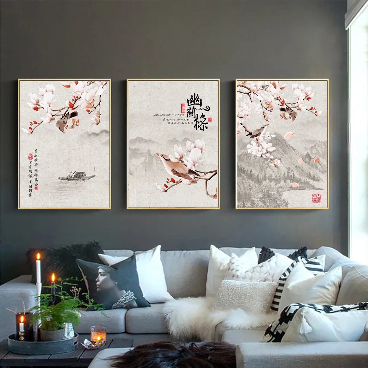 Постер в китайском стиле Youlan с изображением древней поэзии, цветов, птиц, пейзажа, Картина на холсте, настенное искусство, украшение для гостиной