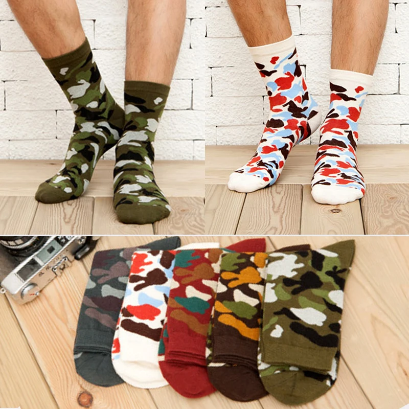 123детские носки, 5 пар, мужские хлопковые носки в стиле хип-хоп из дышащего материала высокого качества Зимняя парка камуфляжной расцветки теплая бизнес нескользящих носочков забавные мужские носки Meias